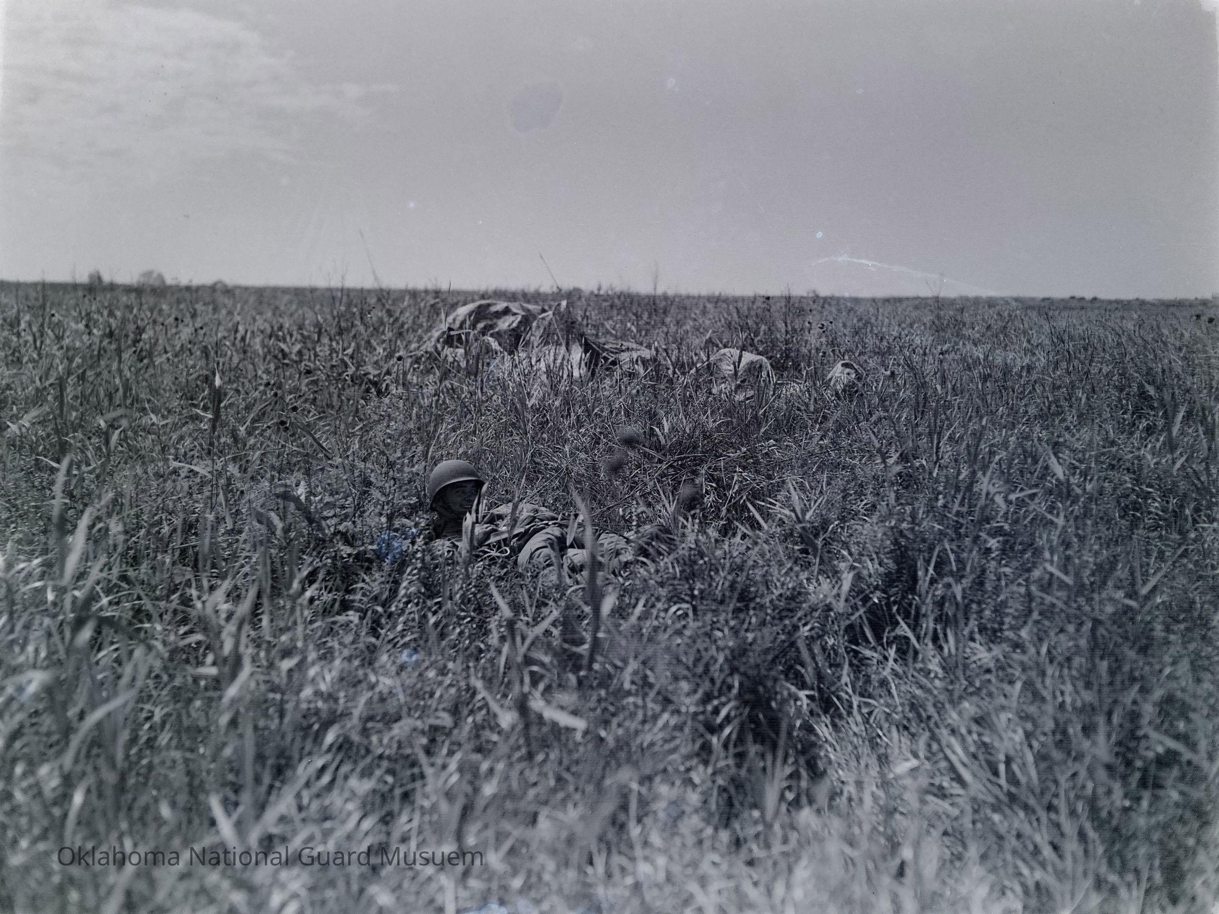 Negative of paratroopers in landing zone on Hokkaido, Japan. 45th Special Forces