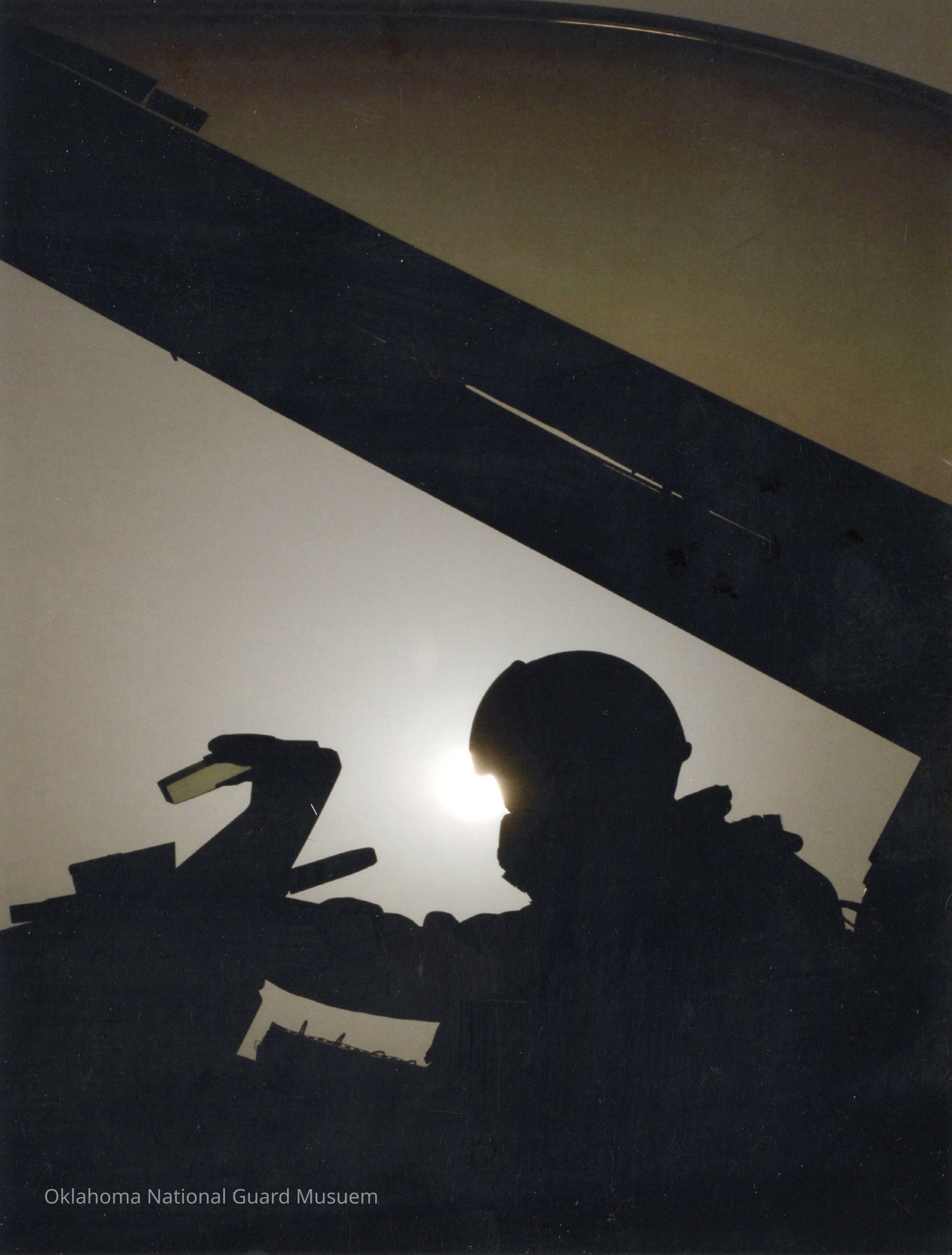 Pilot silhouette in F-16 cockpit. 138th Fighter Wing