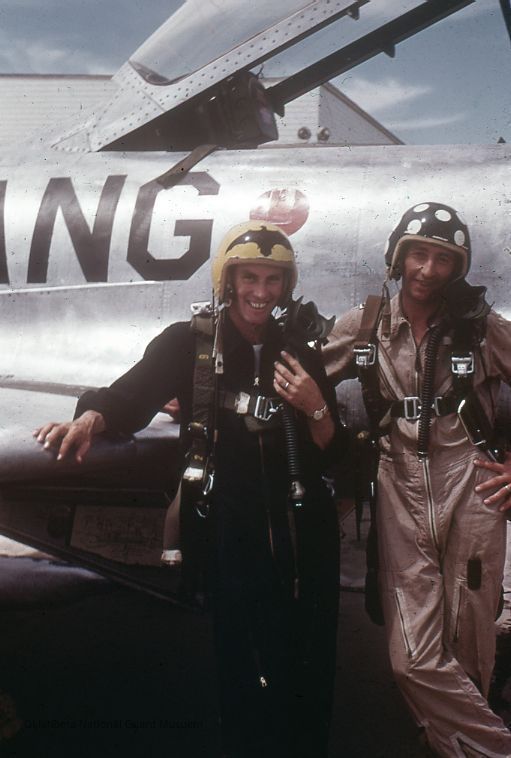 Doyle Hastie (right) and George "Bat" Masterson (left) in front of plane