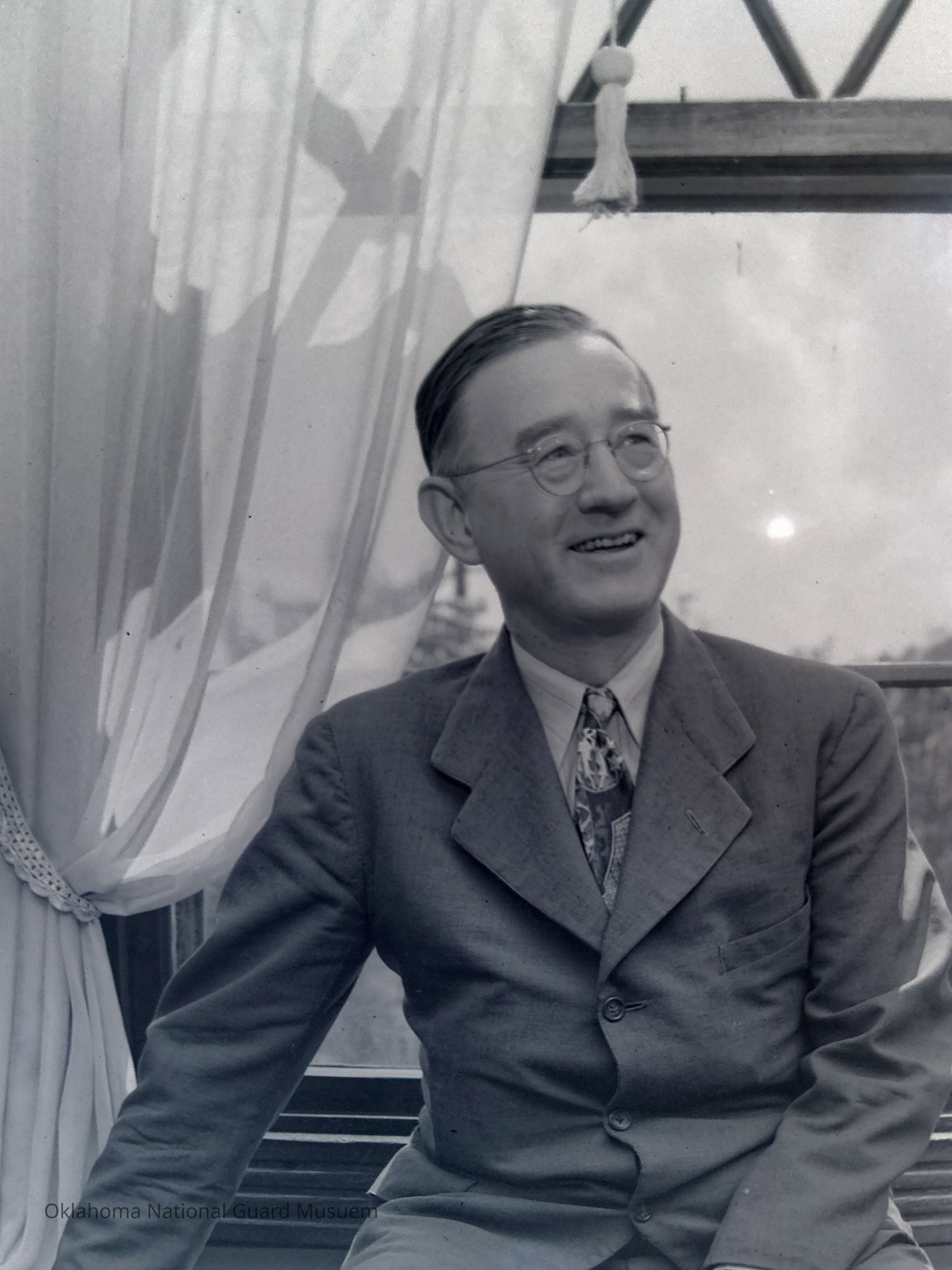 Negative of a portrait of a civilian gentleman in front of a window on Hokkaido, Japan