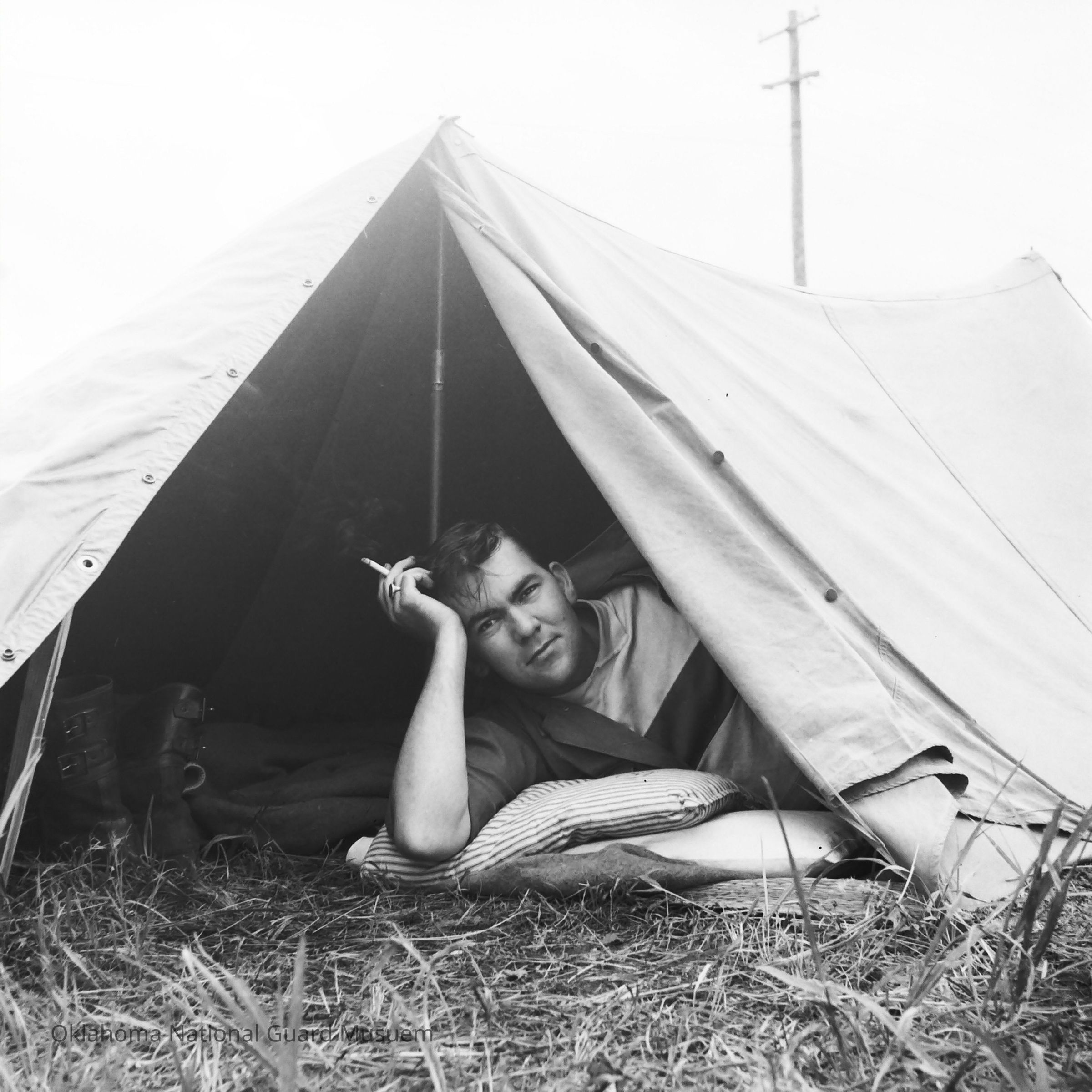Soldiers, Tents, Tobacco smoking, Cigarettes, Portrait photographs, Relaxation