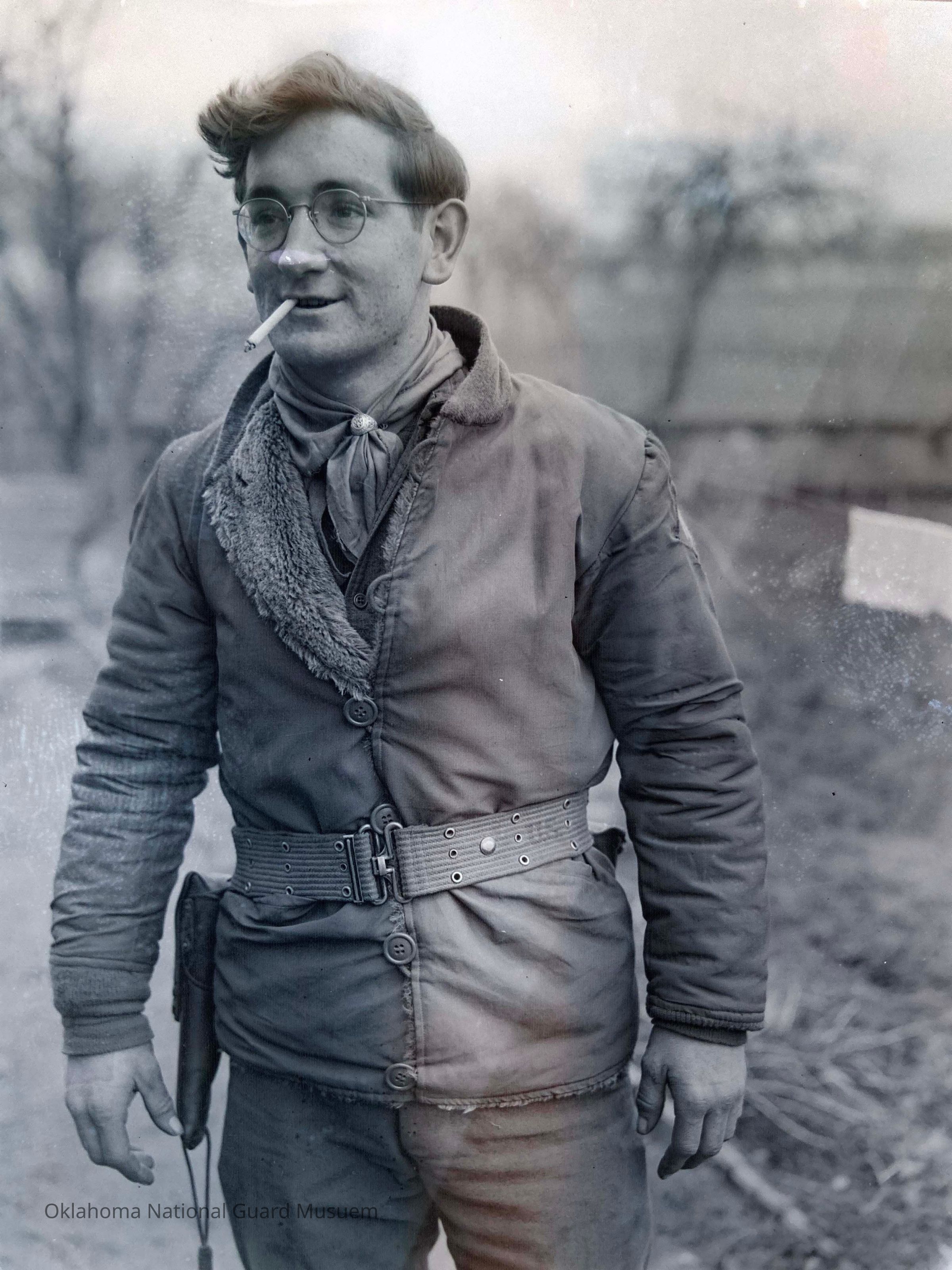 45th Division News Vol. V No. 25 "What is your superstition? When I am able to sleep barefoot, I always take my left shoe off first. When I change clothes, I am careful to transfer my personal belongings from pockets of my old clothes to corresponding pockets of my new clothes. I smoke my cigarettes with the brand name toward my mouth, and I make three crosses with the cigarette on my pack before I light it. I drink water in even number gulps. And, oh yes, I leave my glasses on when I sleep!"Made/Created