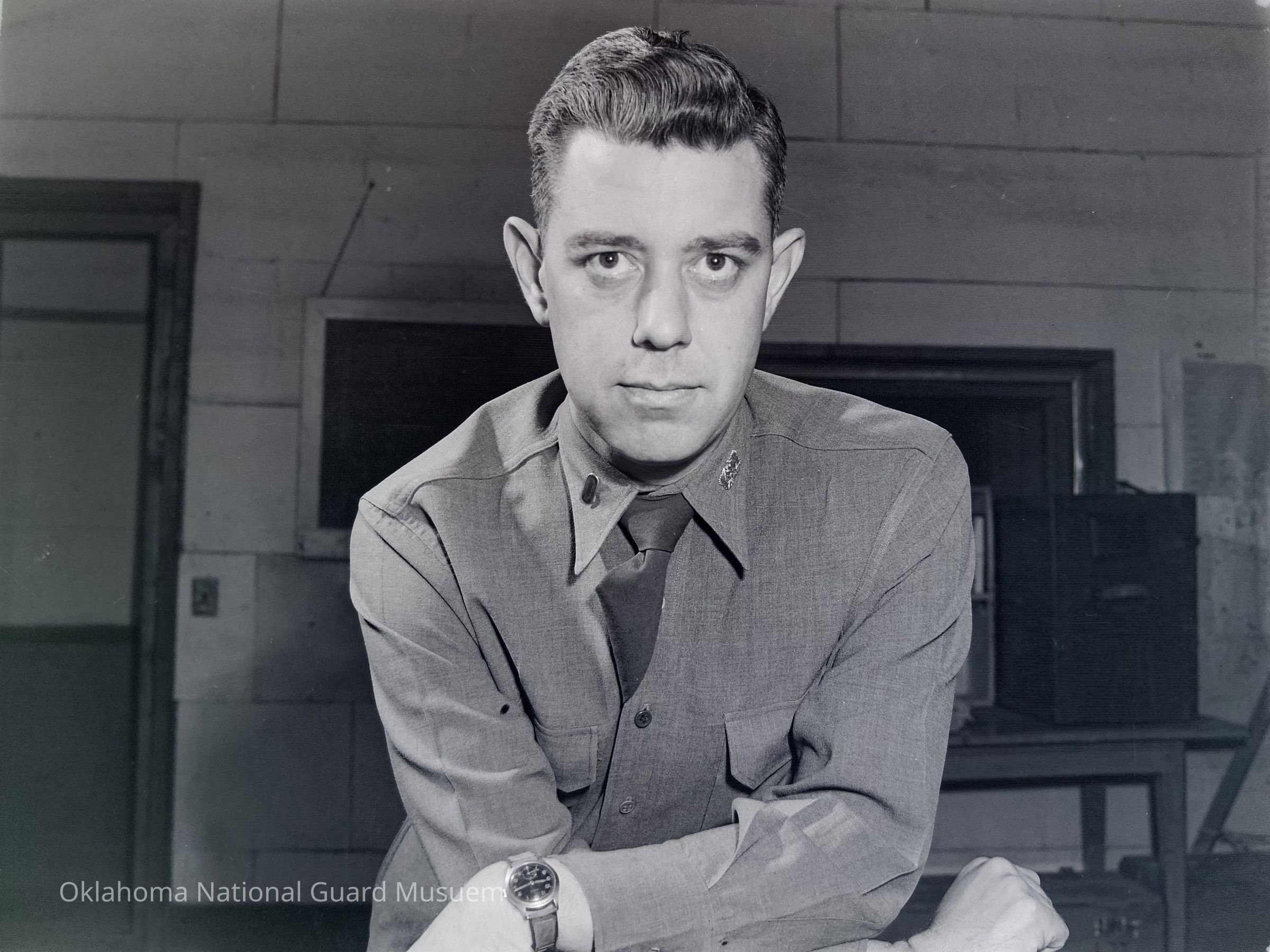 Negative of a portrait of unknown officer in an office on Hokkaido, Japan