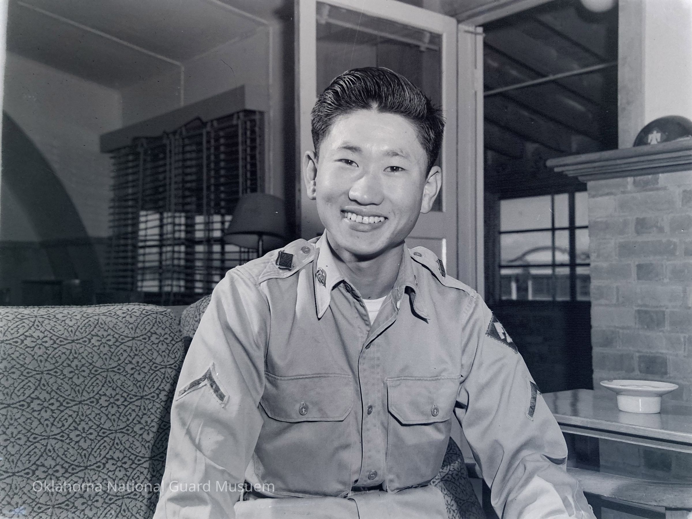 Soldiers, Portrait photographs, Couches, Fireplaces