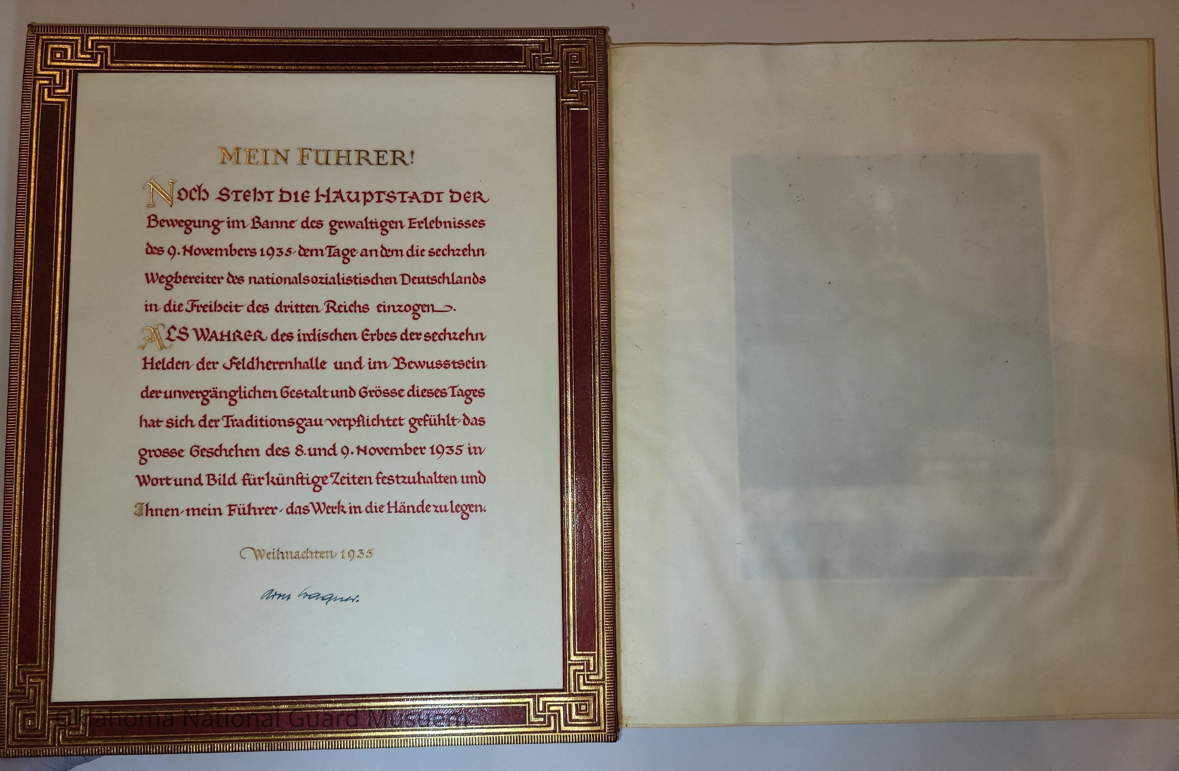 Book and photo album of the 12th anniversary of the Putsch and the intermmet of the dead to the Kings Plaza in Munich. Presented to Hitler for Christmas 1935