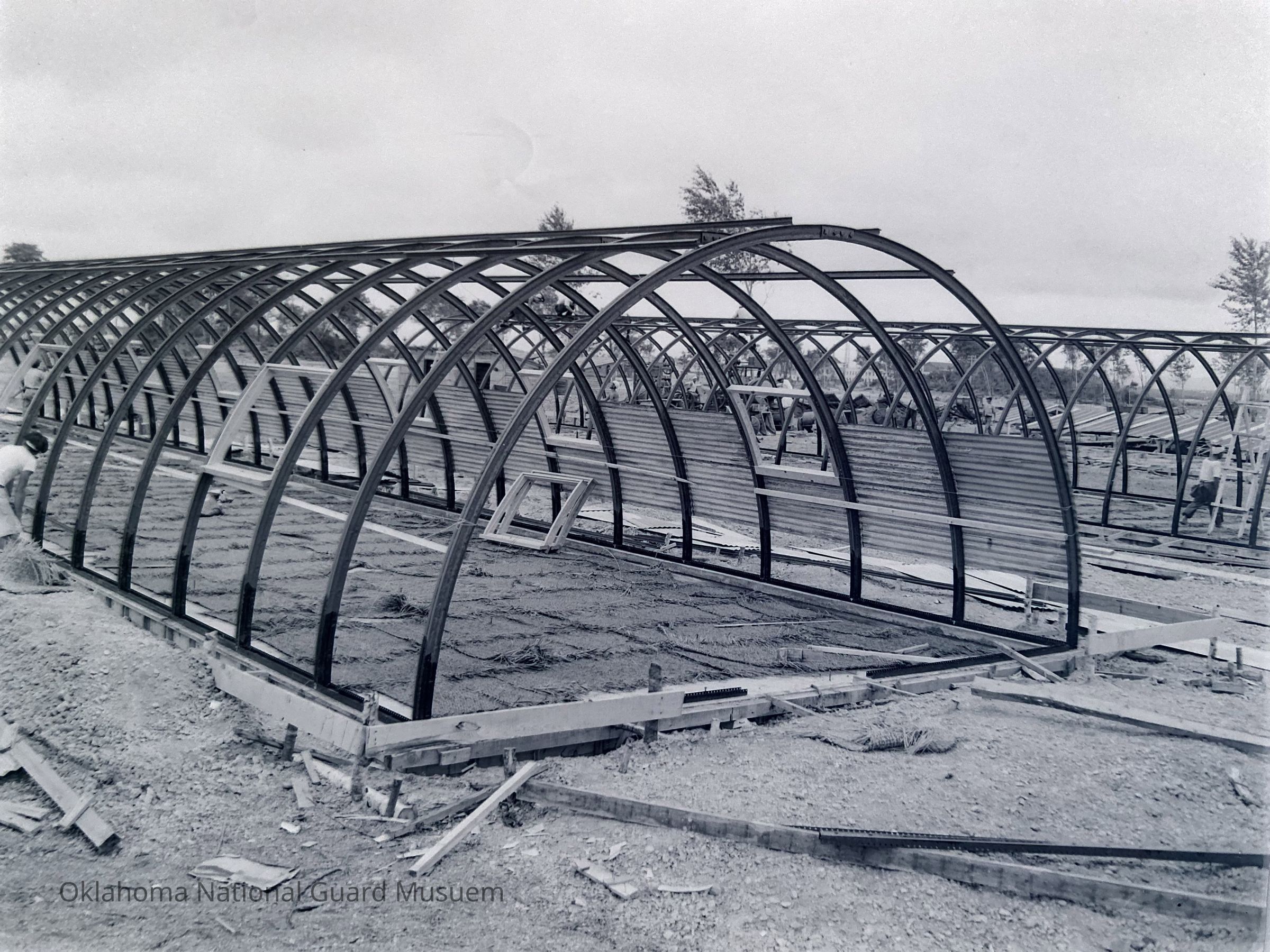 Negative of a Quonsets hut under construction on Hokkaido, Japan
