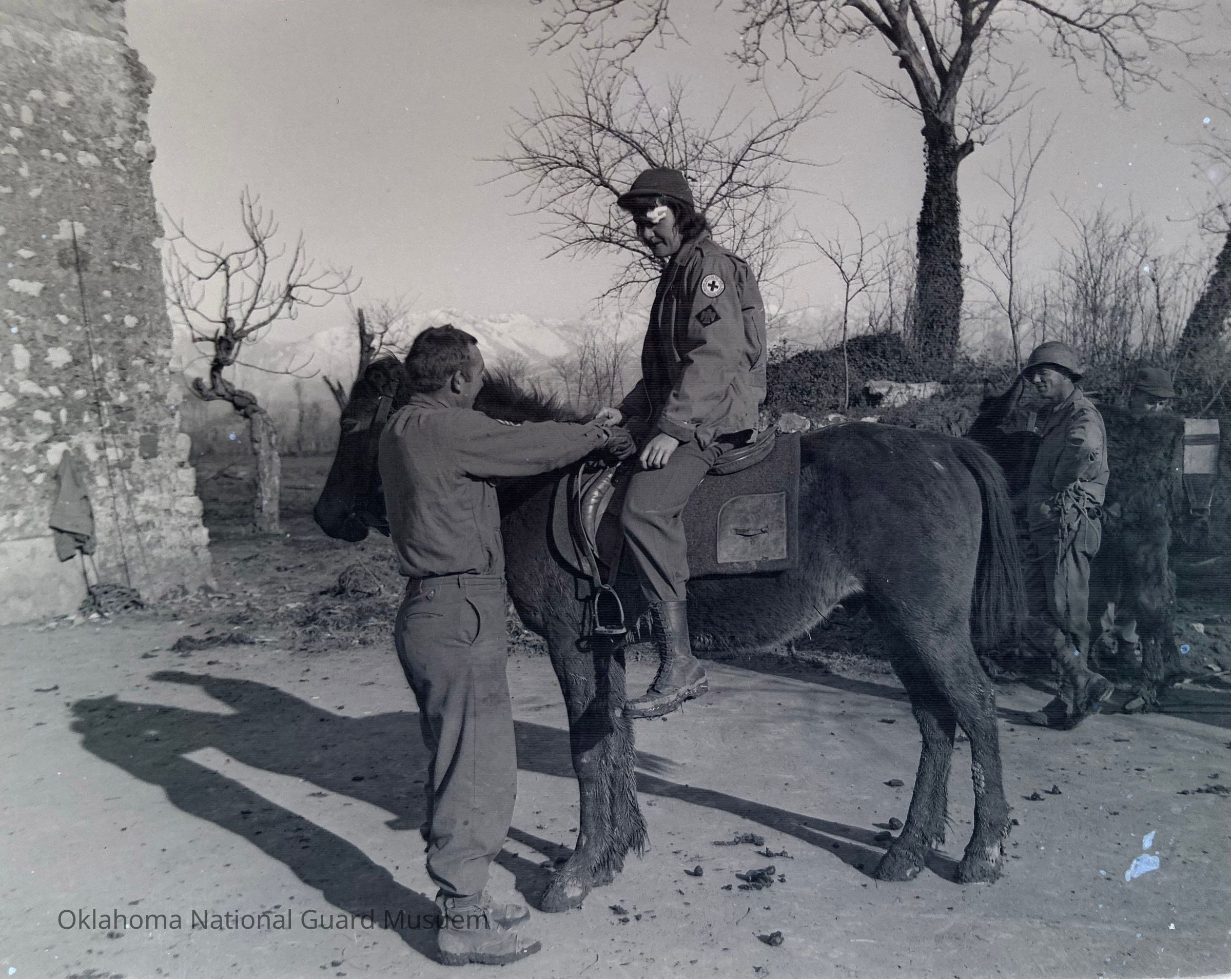 Red Cross girl on horse