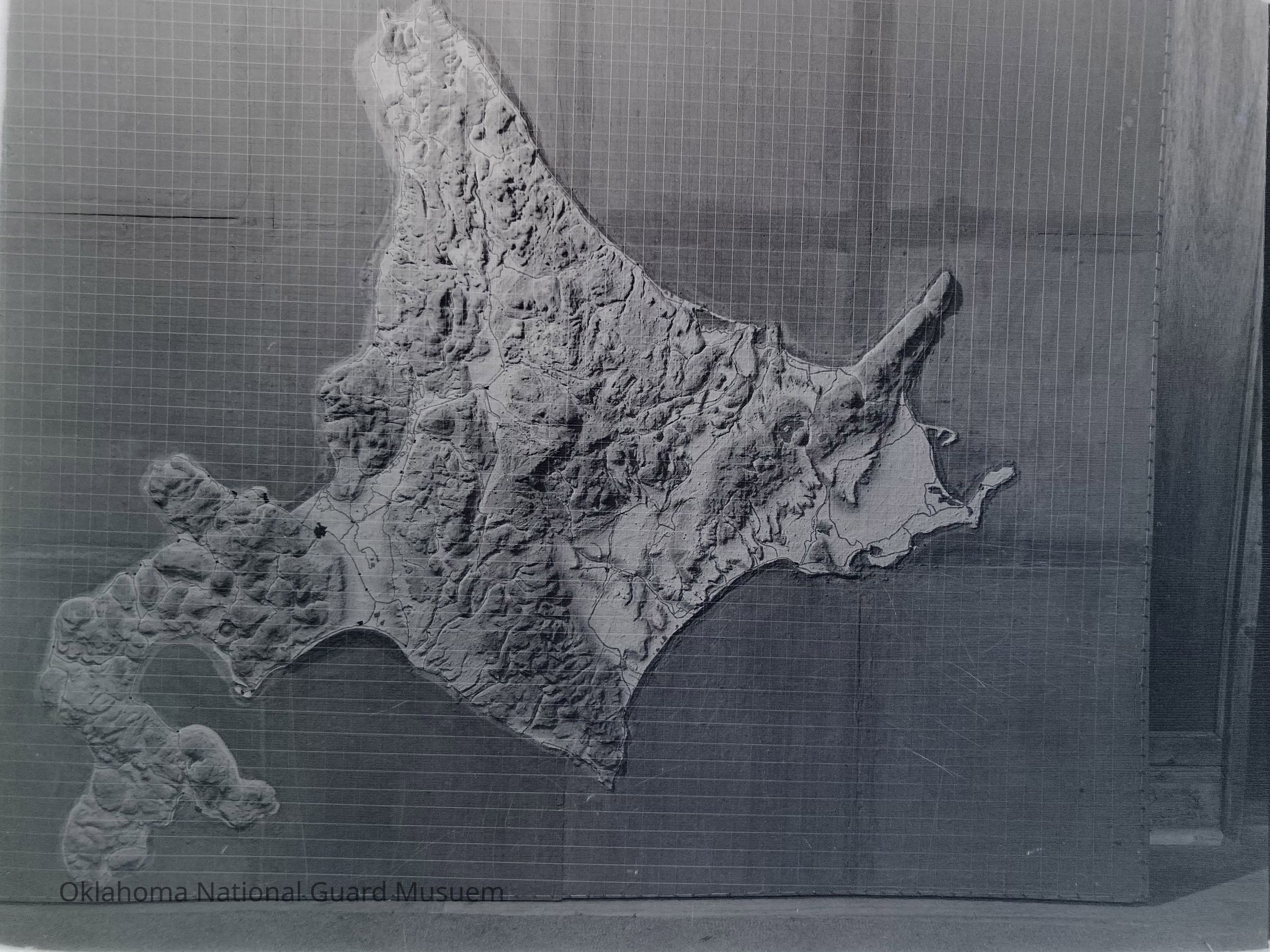 Negative of a Relief map of Hokkaido Island on Hokkaido, Japan