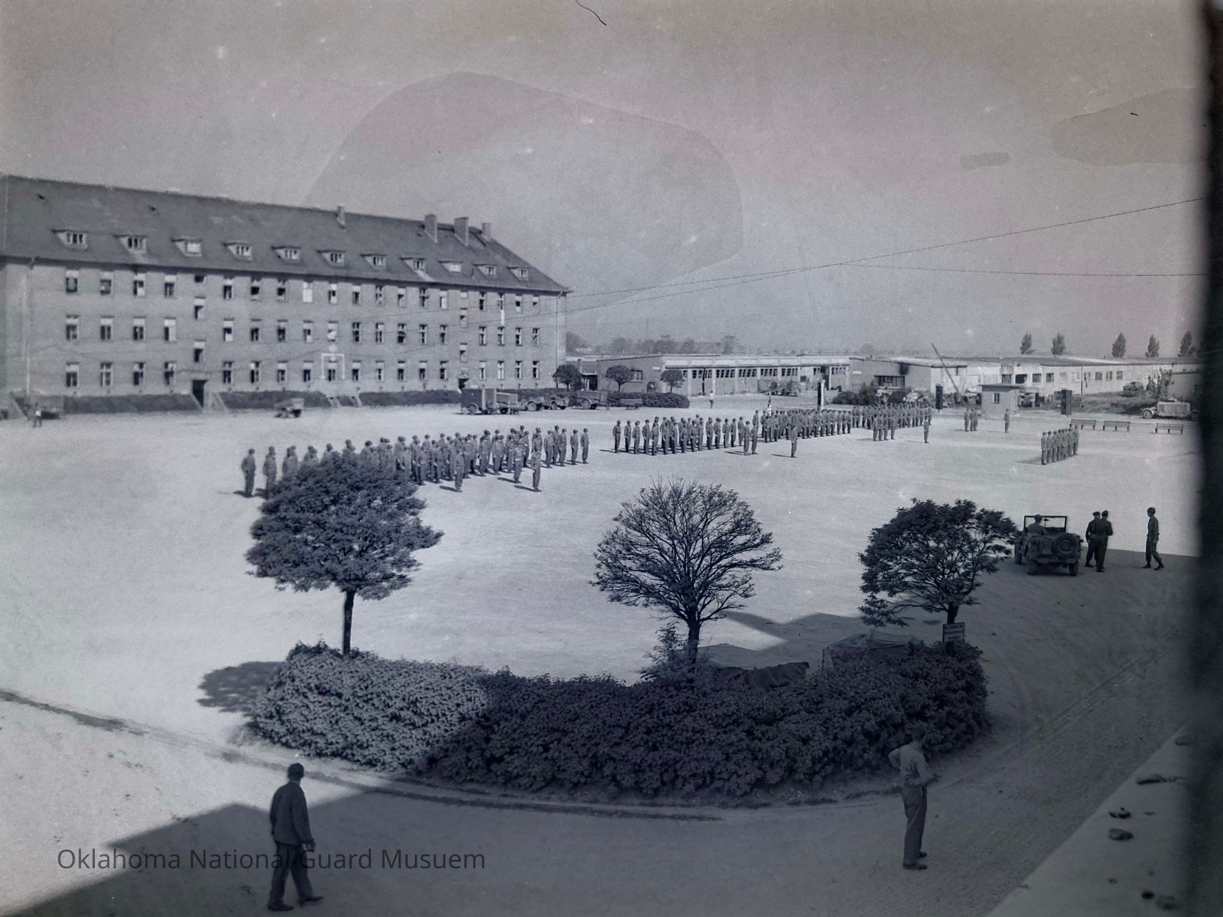 Negative of a review of the 120th Engineers