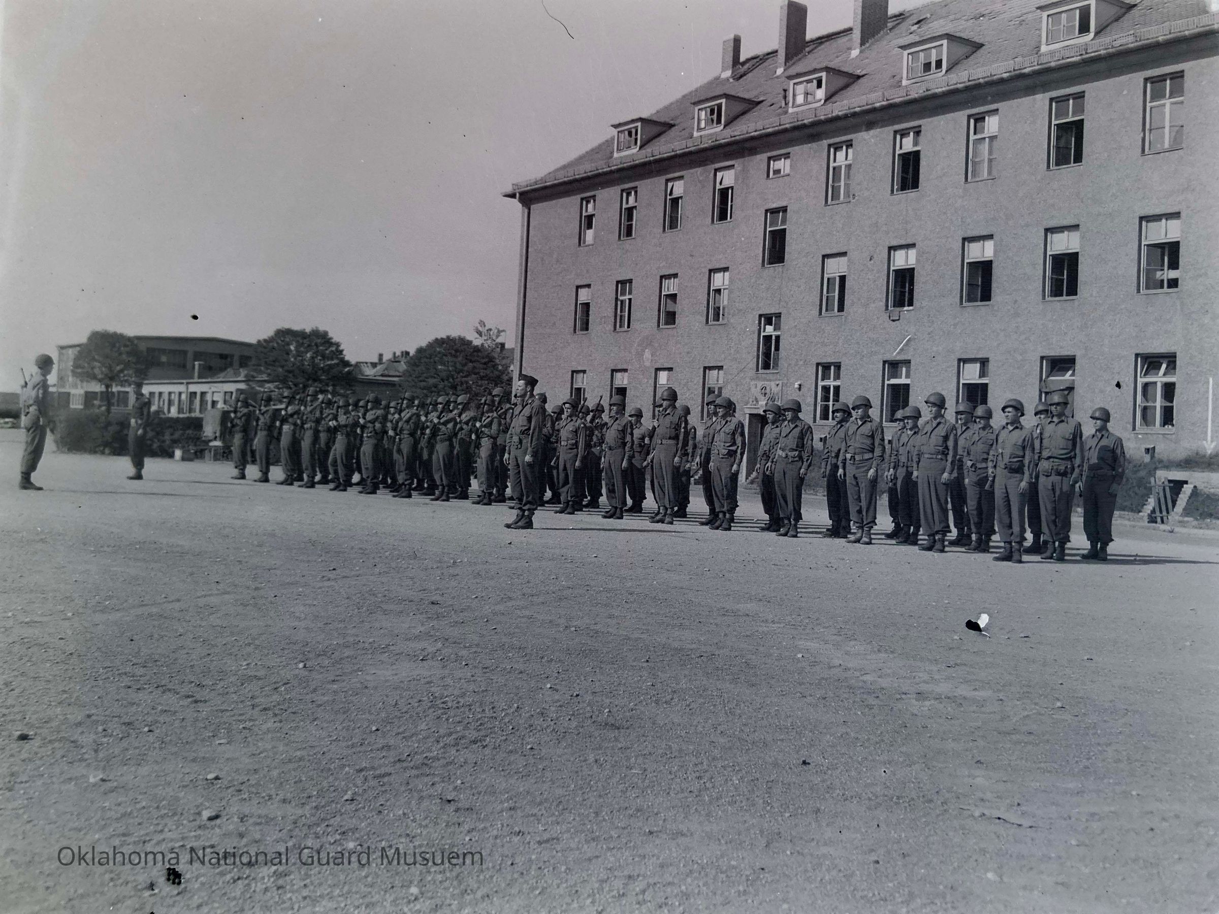 Negative of a review of the 120th Engineers