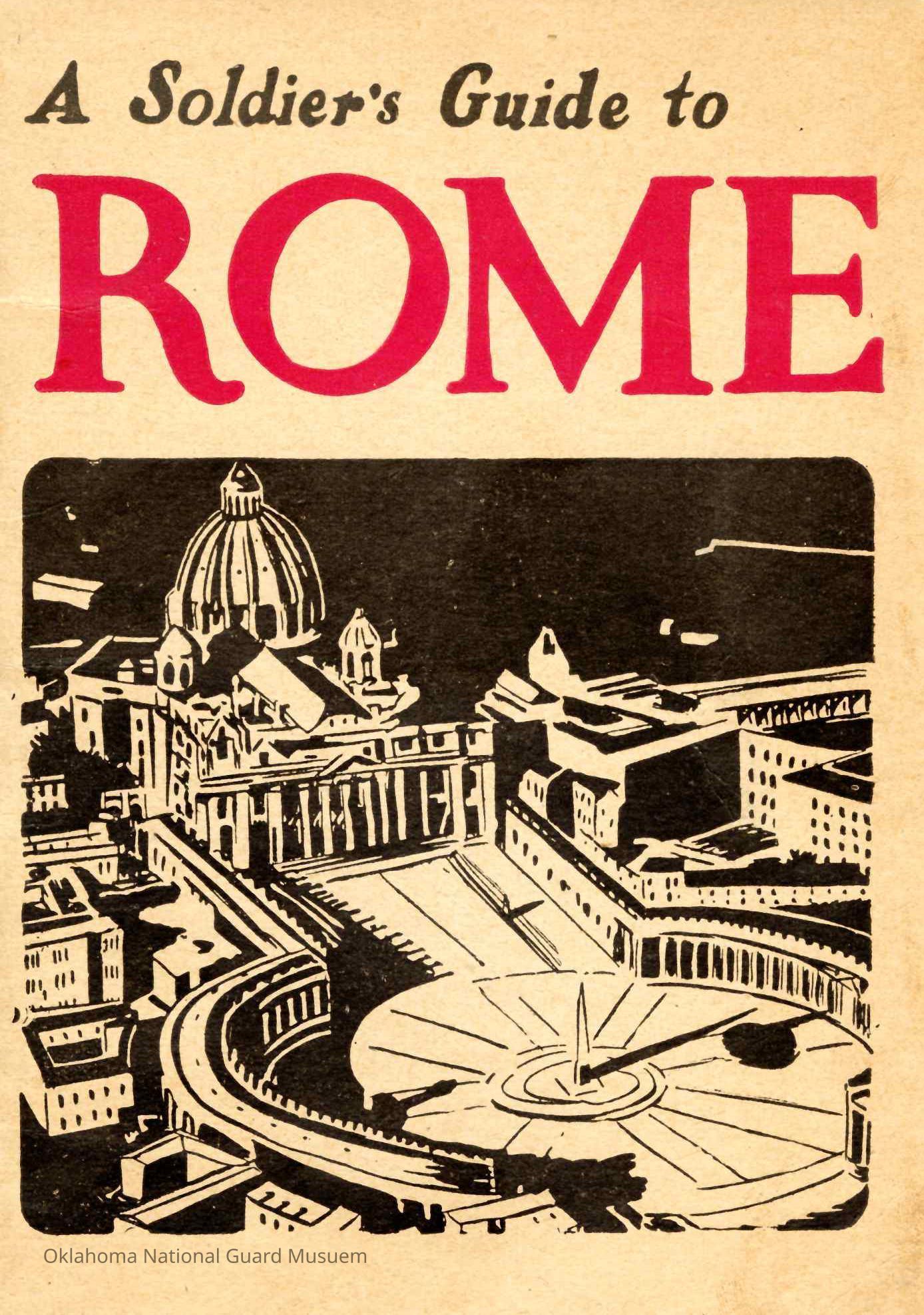 Rome walking tour booklet for soldiers on leave. Book includes a brief overview of the city as well as five possible walking/ sightseeing tours for soldiers to do around the city