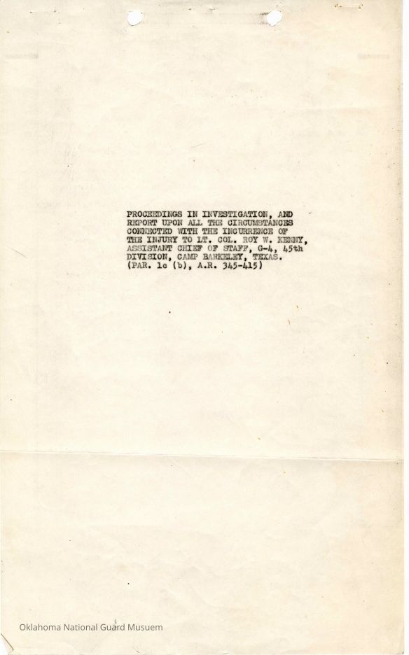 Transcript of the questioning and investigation into the crash involving Roy Kenny and his driver at Camp Barkeley