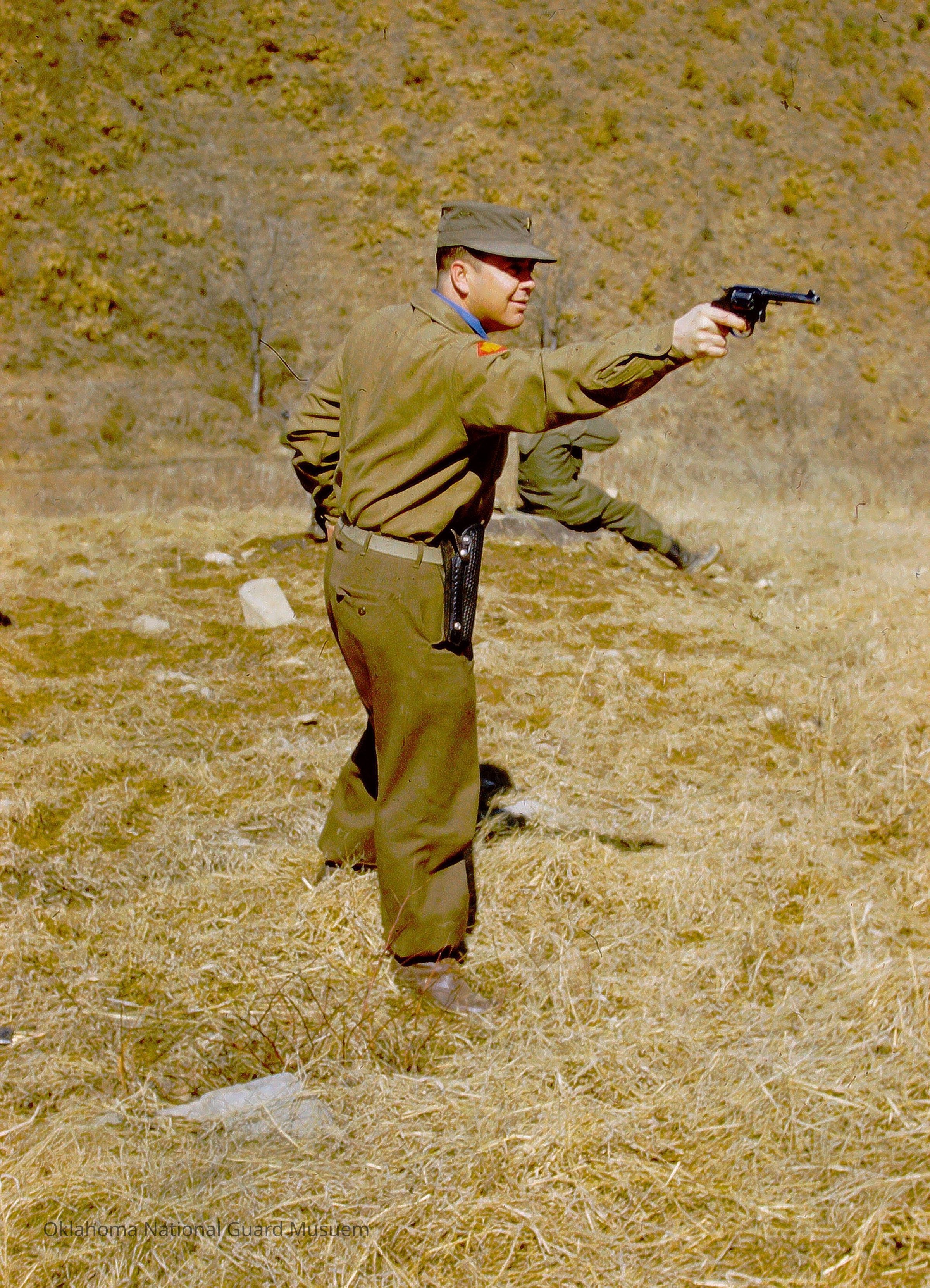 Soldier aiming revolver