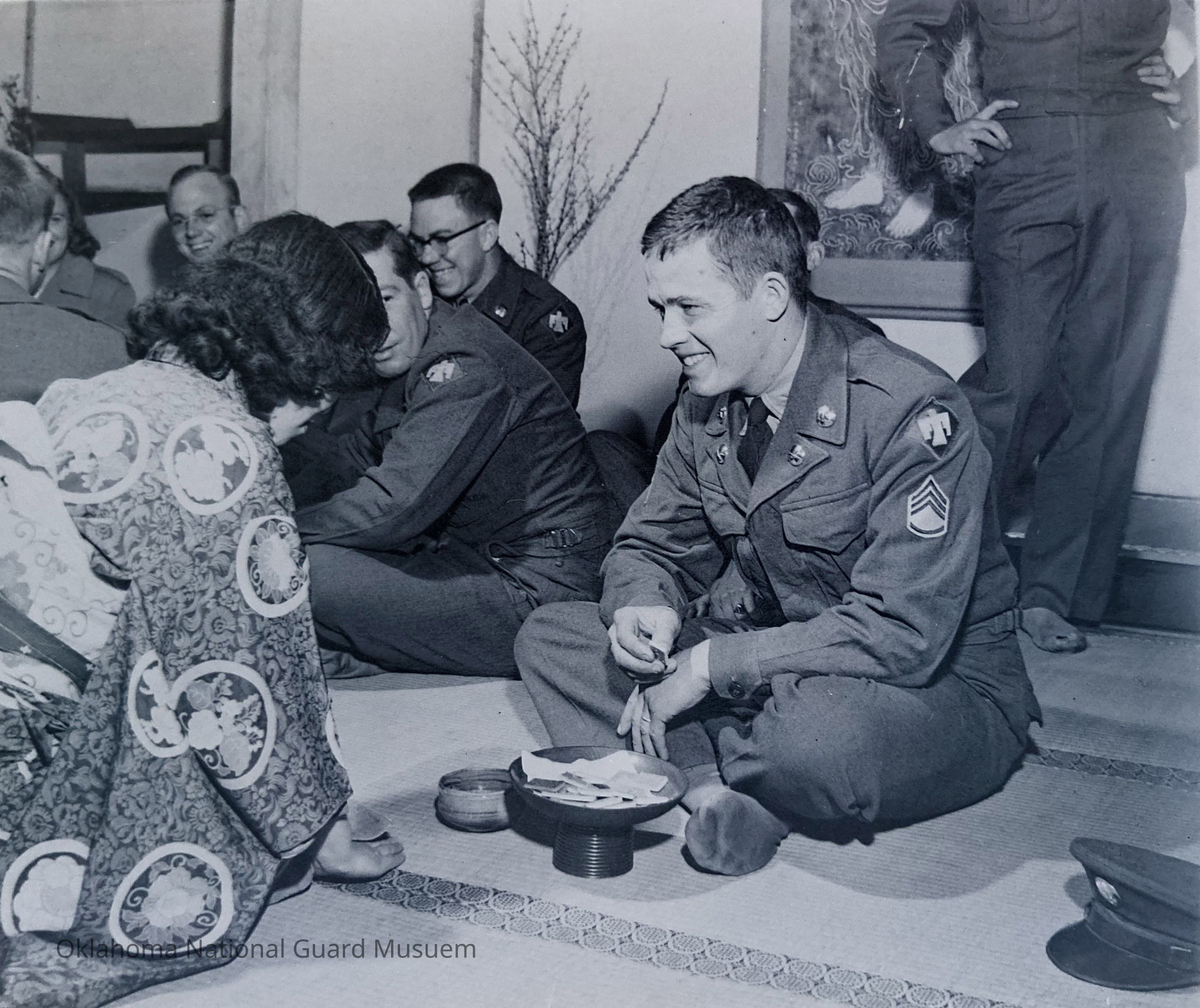 Soldier being served by a Japanese hostess in a restaurant