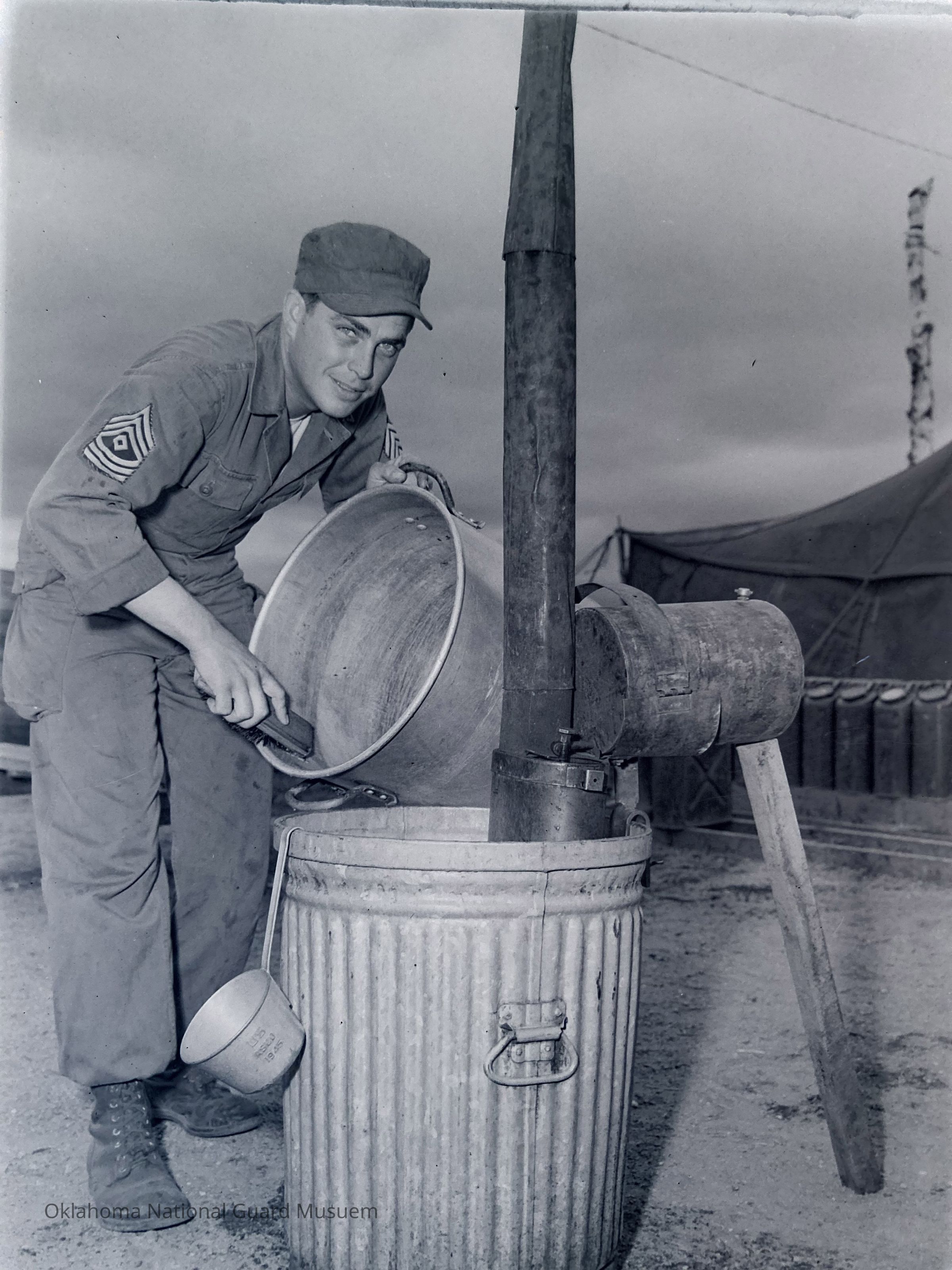 Soldier cleaning a pot