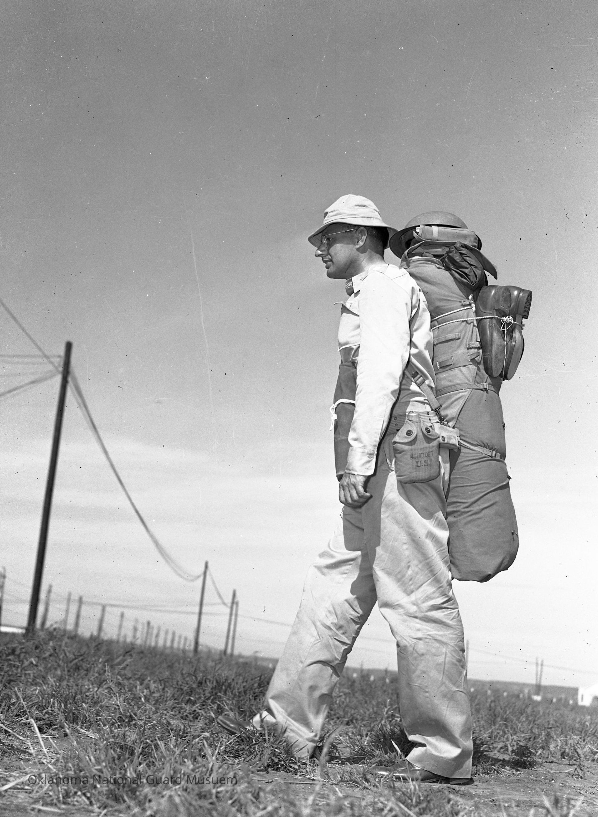 Photograph taken as a challenge from the 45th Division News staff to Lt. Col. Reichmann and published in the 45th Division News on 7/2/1941.