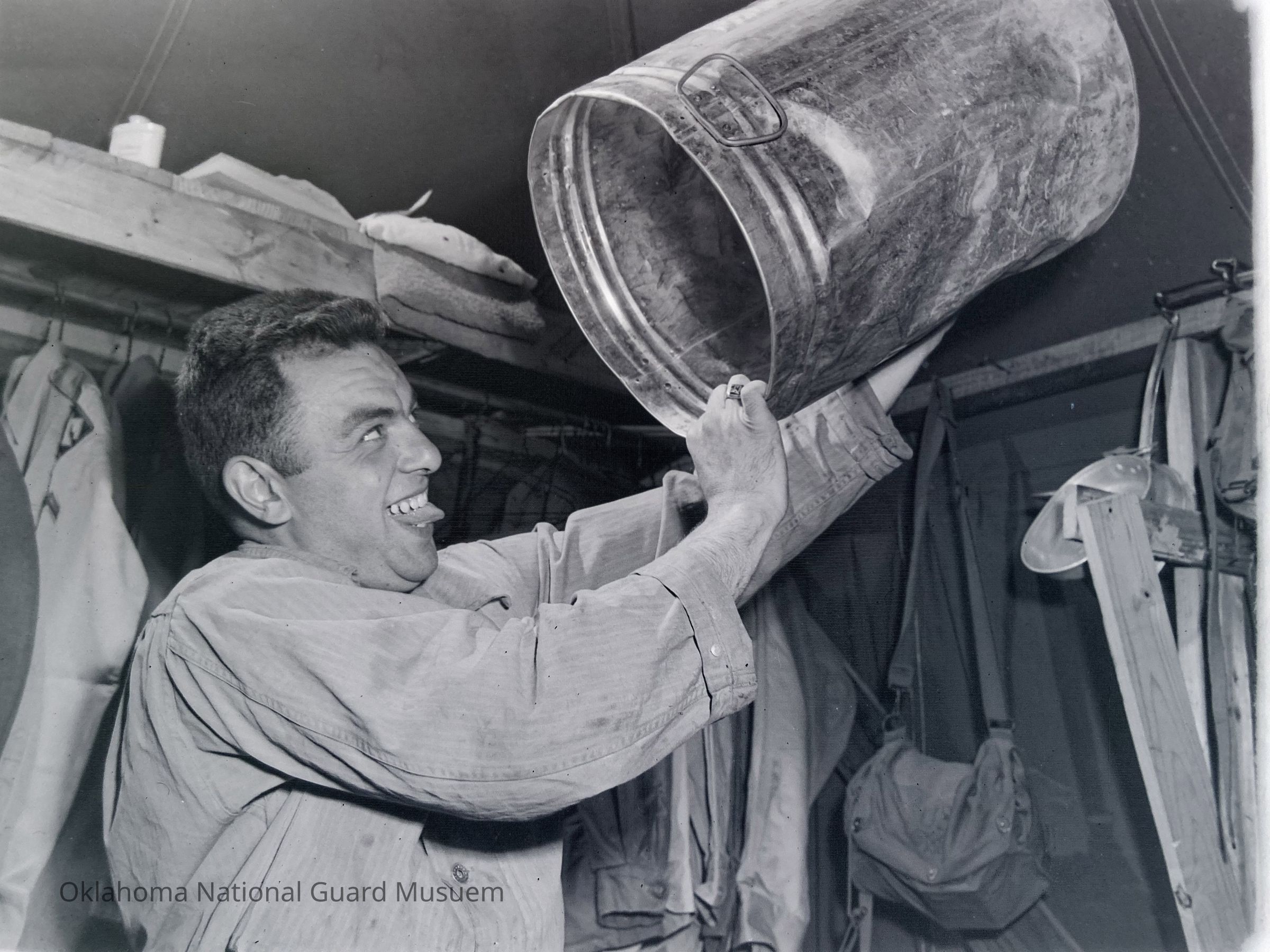 Soldier examining the inside of a 5-gallon can