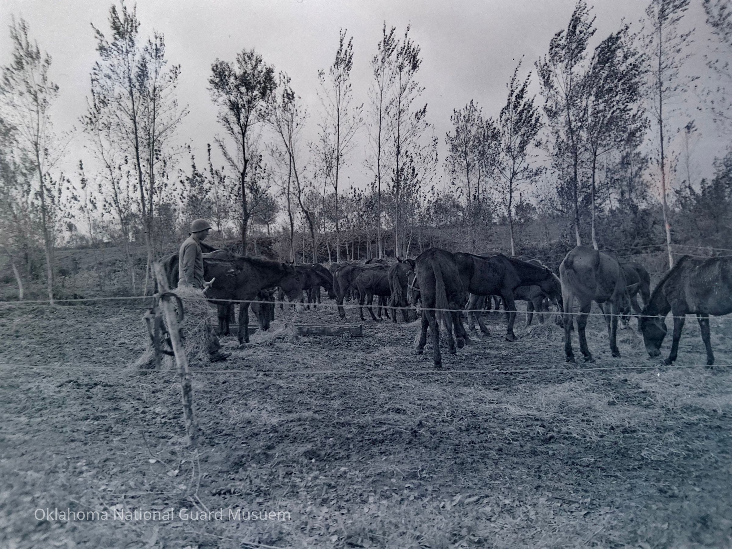 Soldiers, Mules, Horses, Hay, Feeding of animals