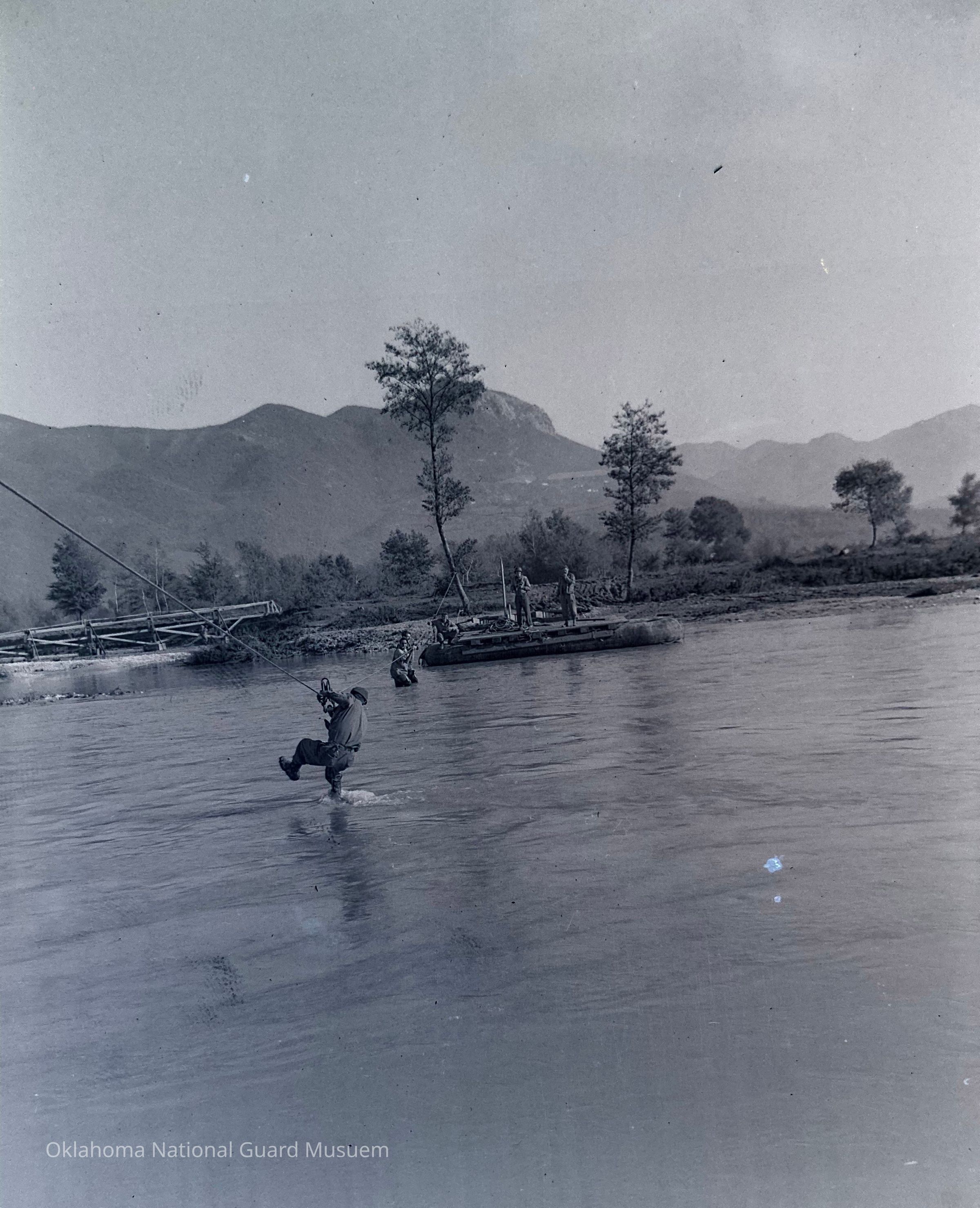 Photograph published in the 45th Division News, 4 December 1943, Vol. IV, No. 21, printed with story "Thunderbird Engineers are River Boatmen"