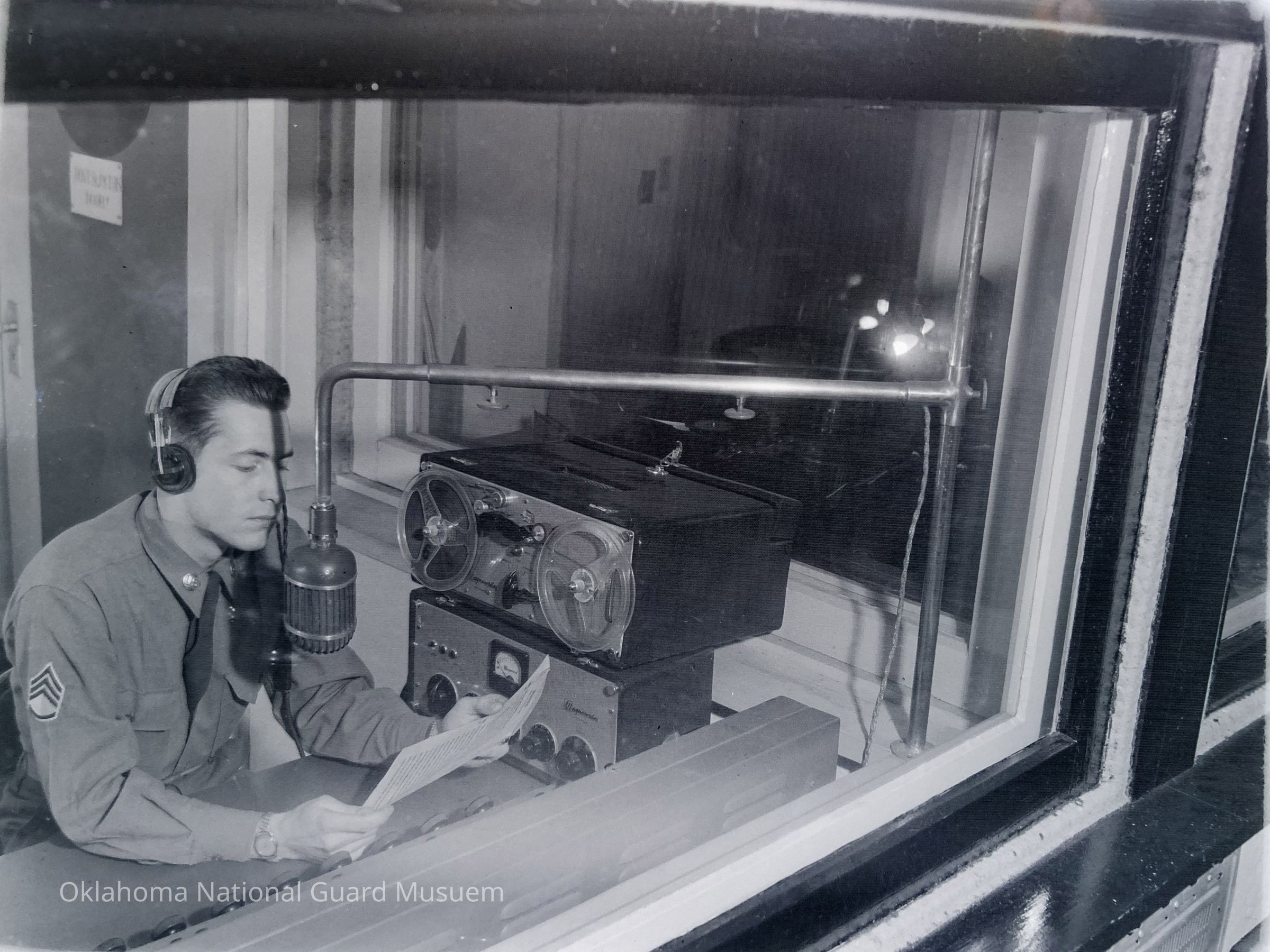 Soldier inside a broadcasting booth