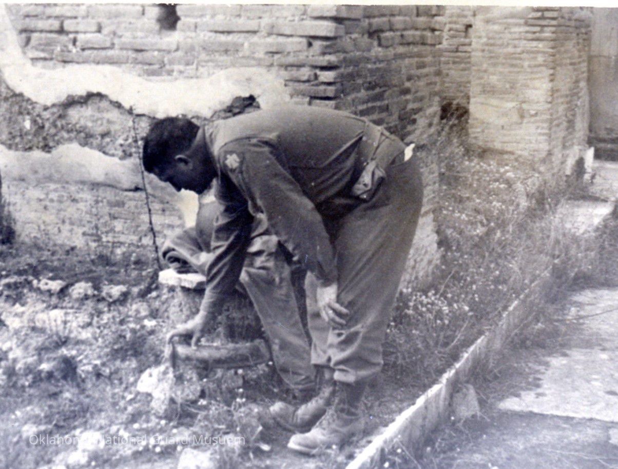 John McCasland 45th Division inspects the plumbing at Pompeii