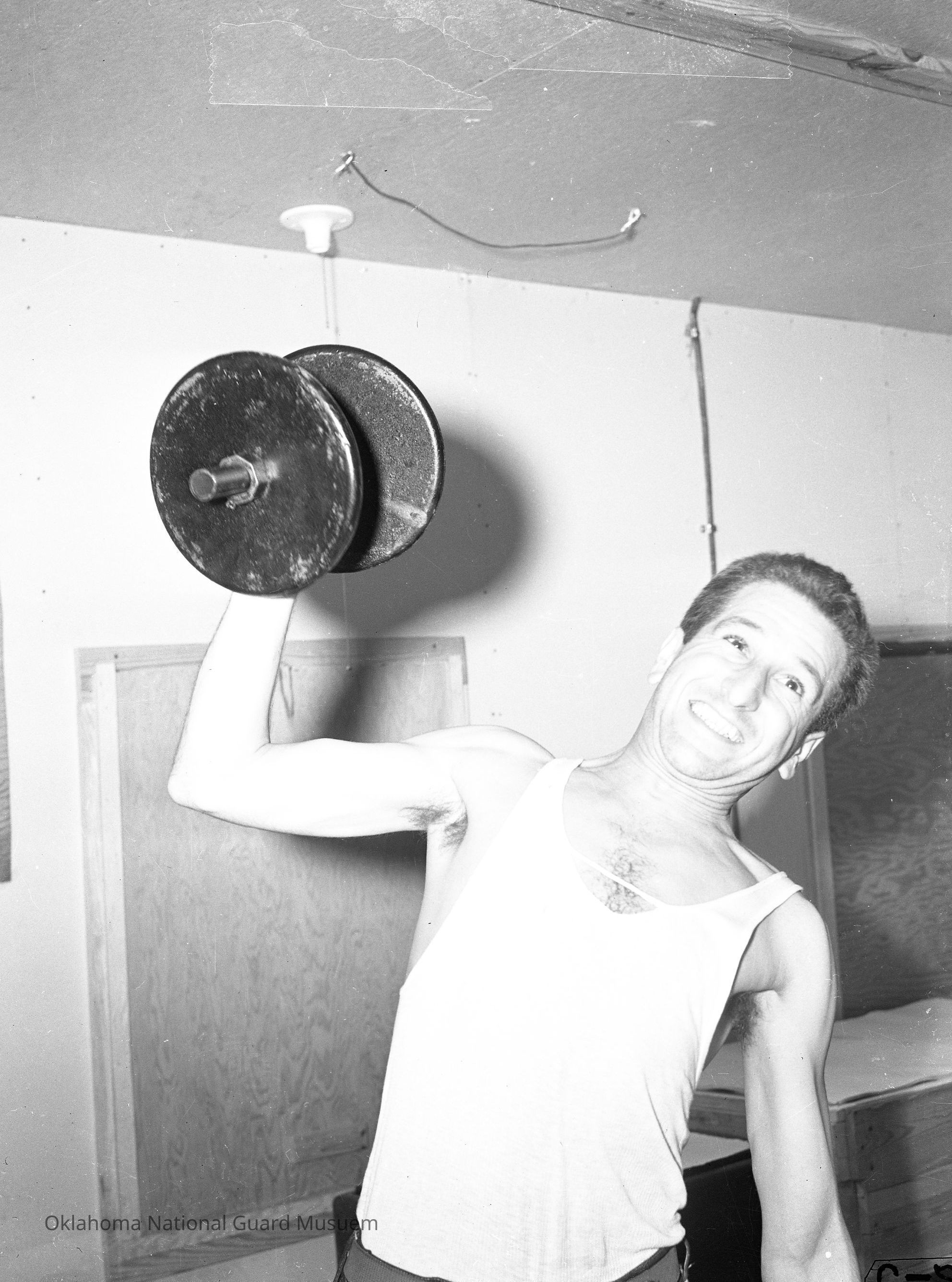 Negative of a soldier lifting weights