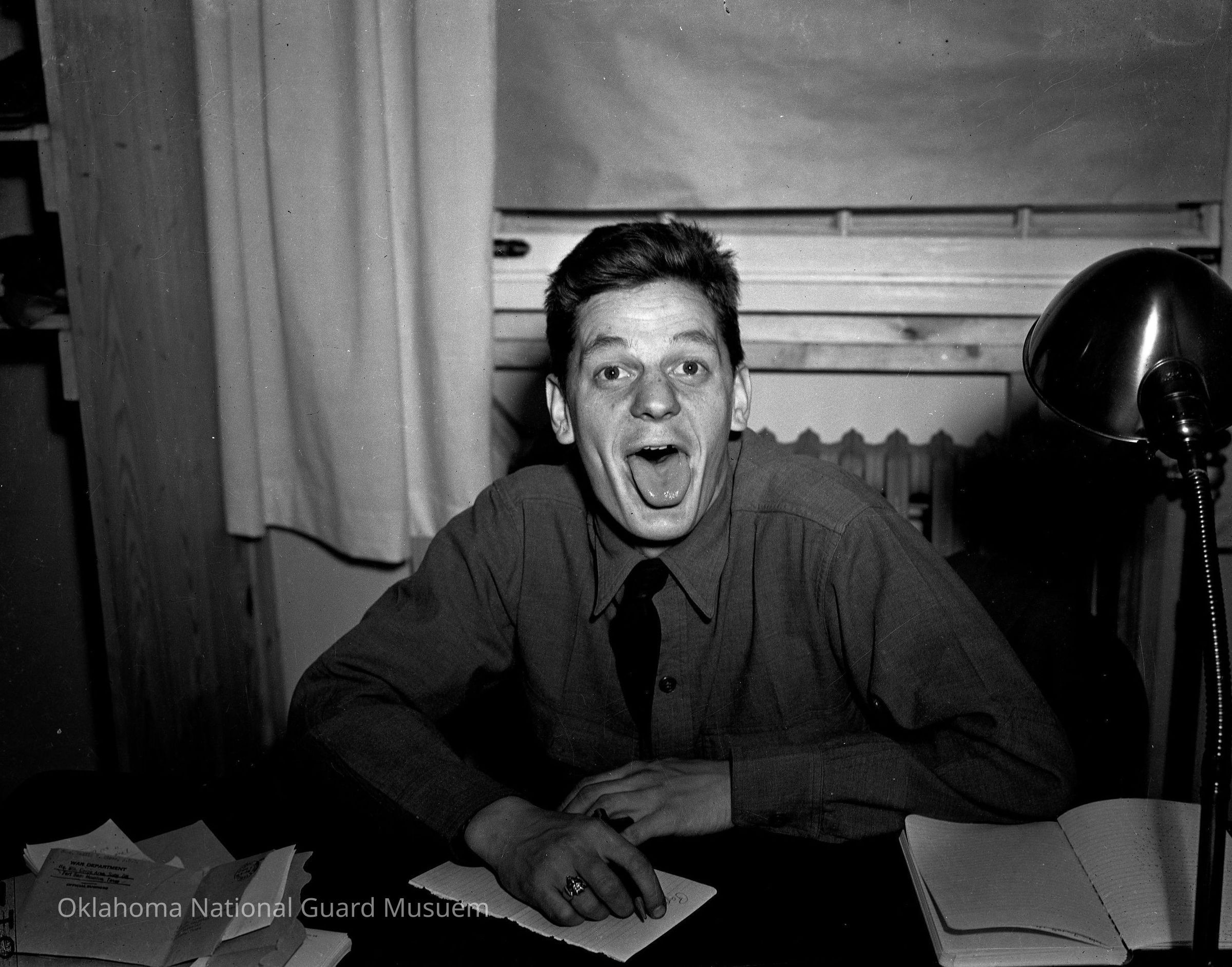 Negative of a soldier making a face for the camera