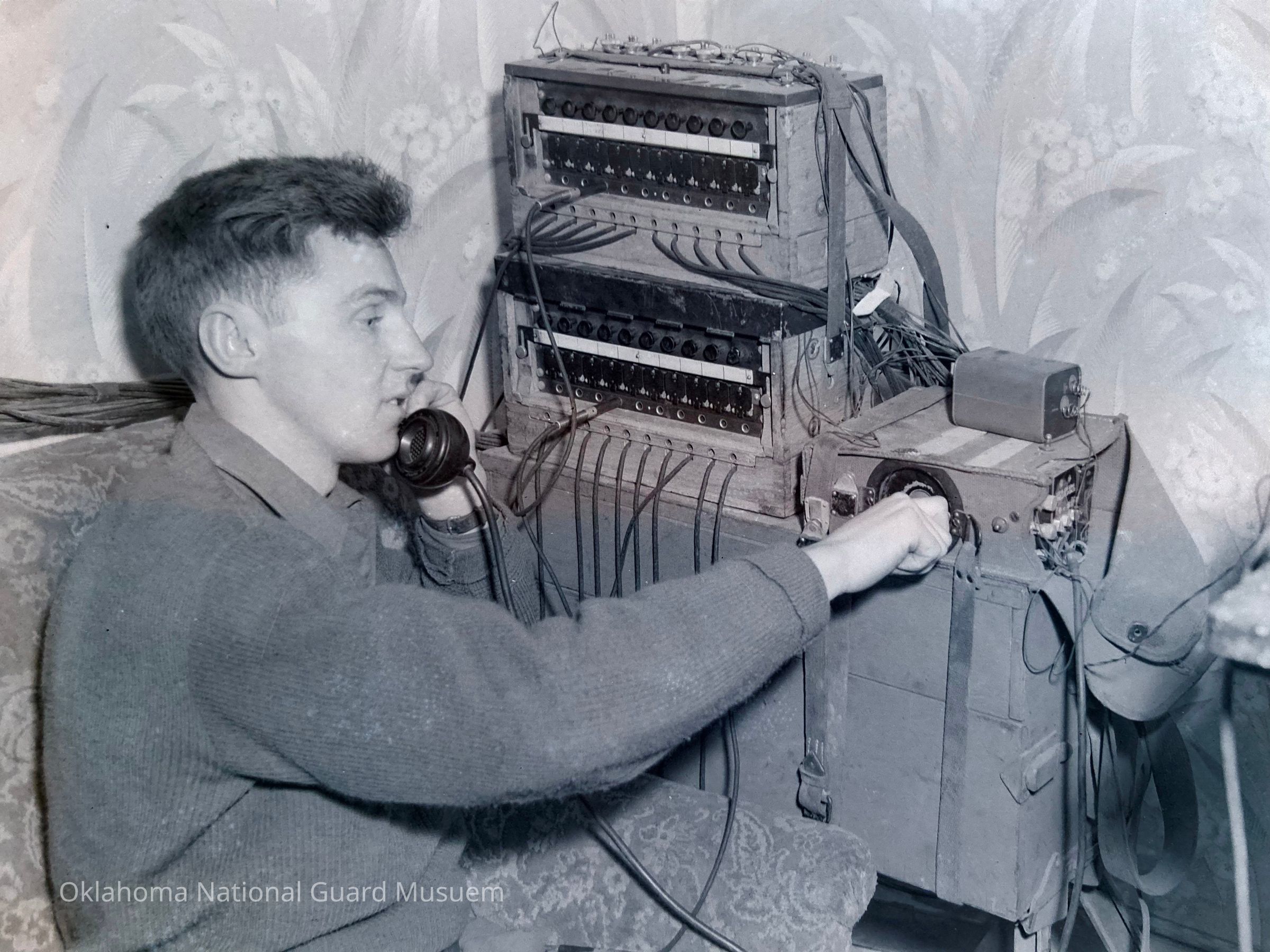 Negative of Robert Jones (Youngstown, Ohio) operating a captured German push button switchboard