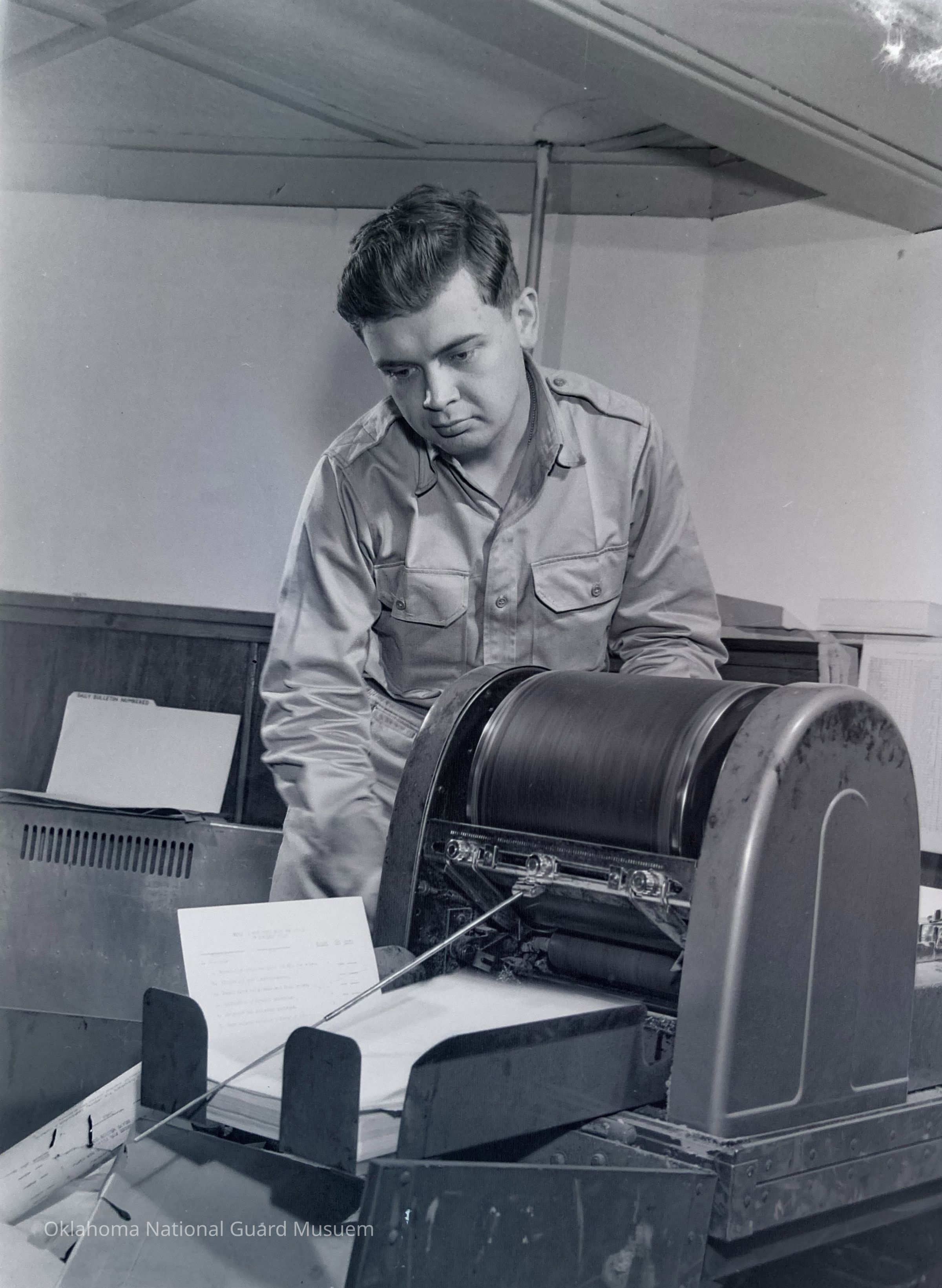 Soldier operating a mimeograph machine