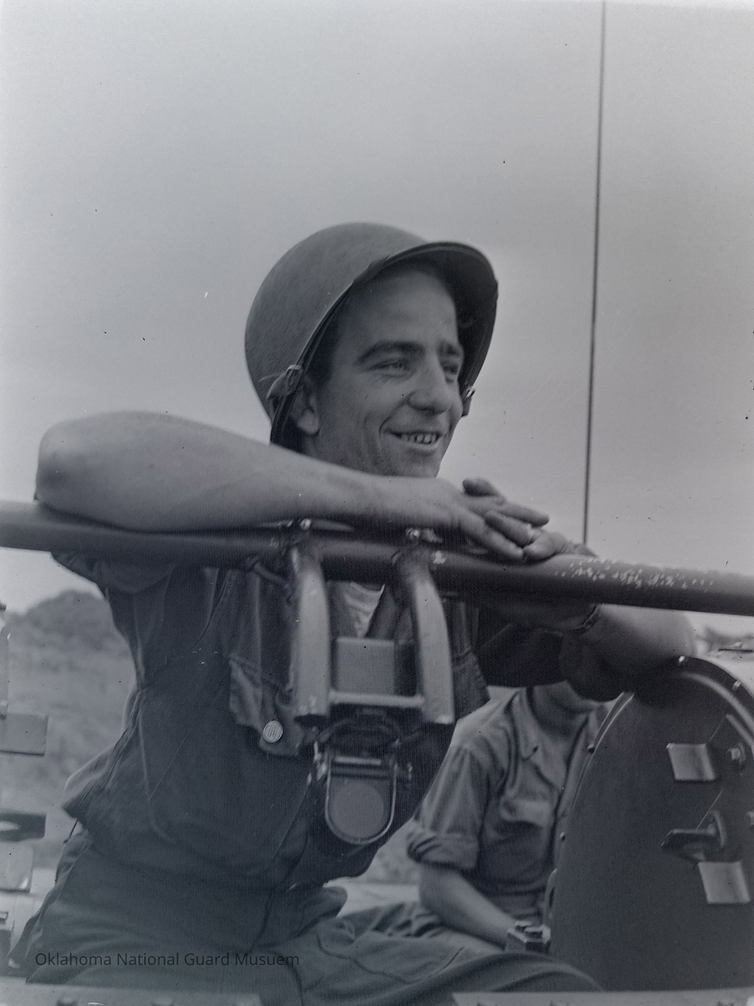 Negative of a soldier operating an unidentified piece of equipment on Hokkaido, Japan