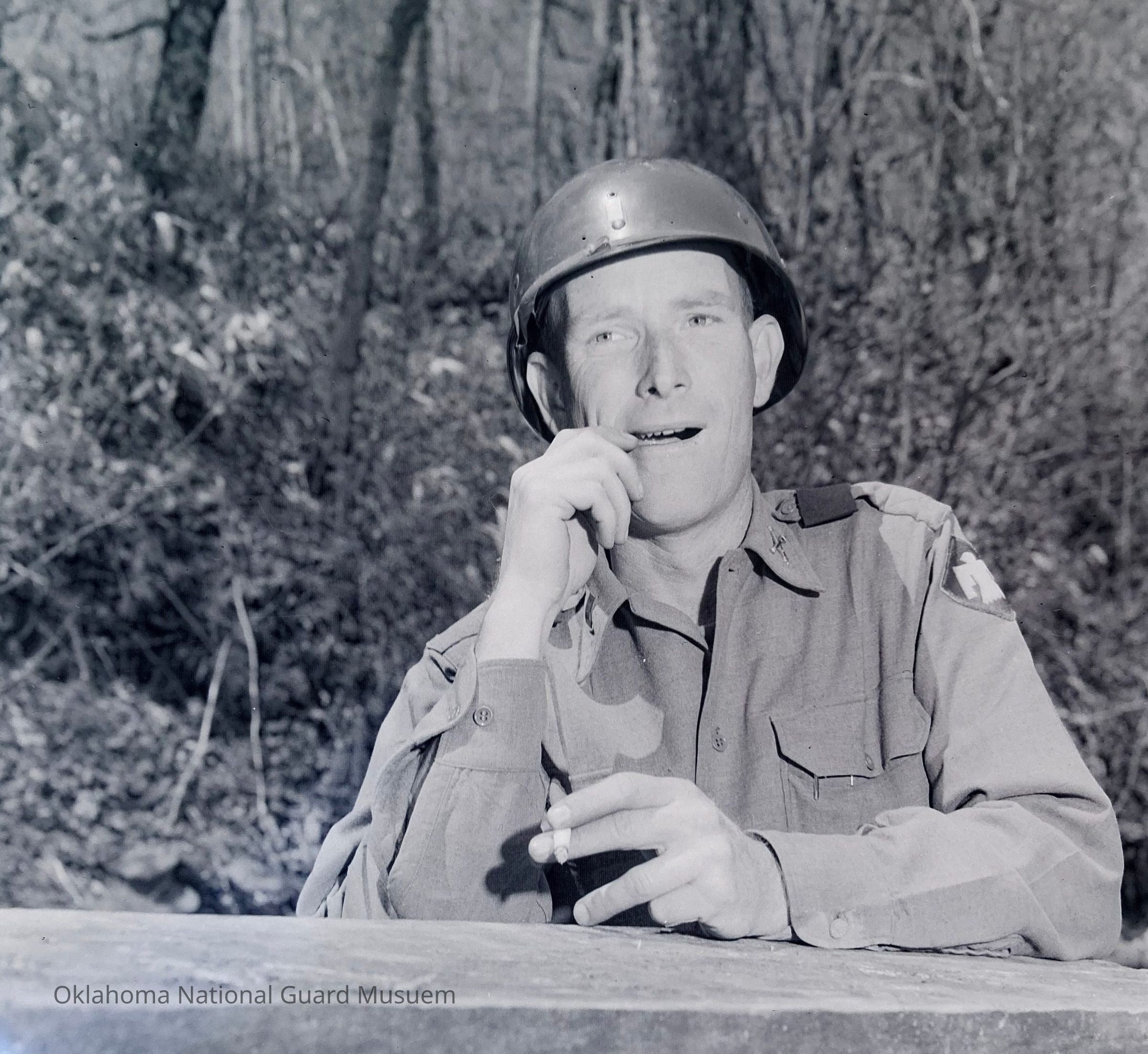 45th Division news Vol. VI No. 34 "James Hutson, Battery B 189th Field Artillery, looks as satisfied with C rations as with a T-bone."