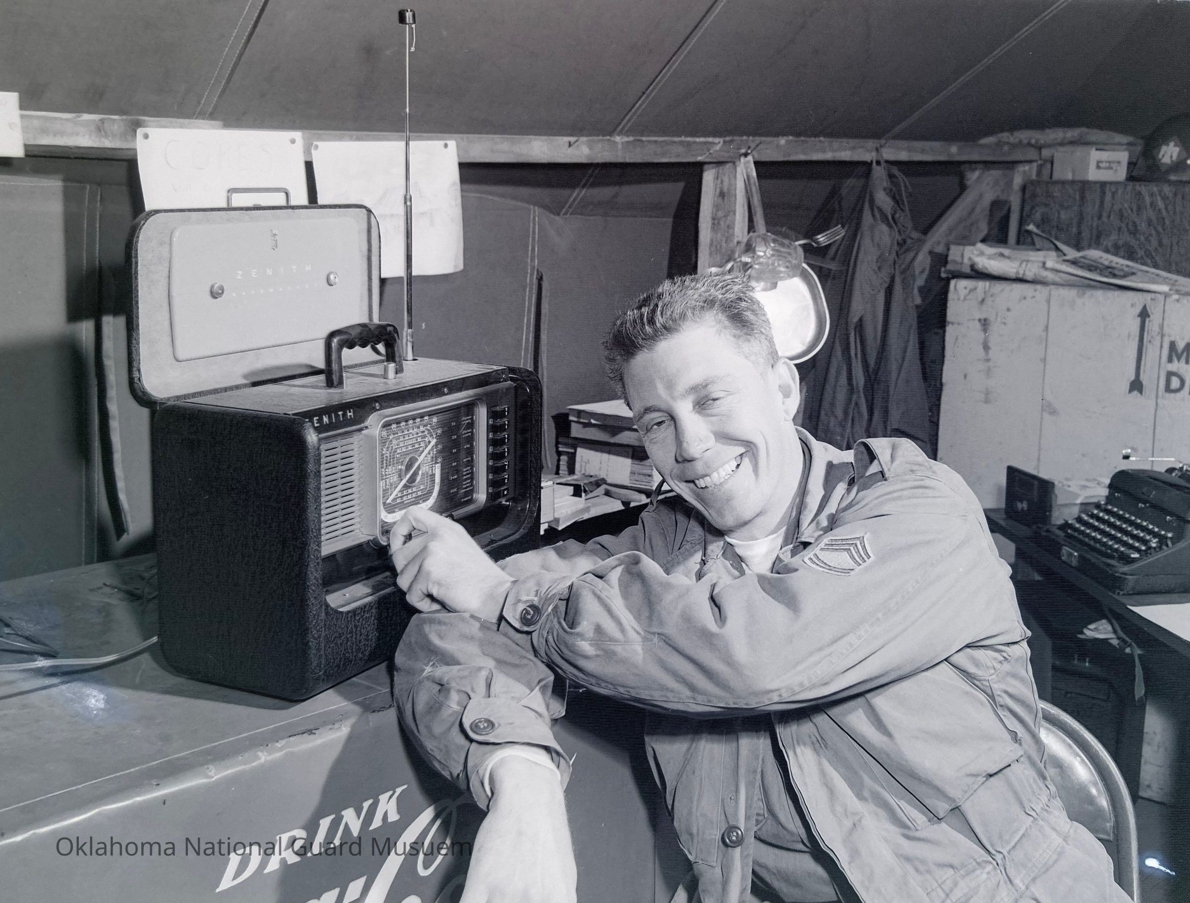 Soldiers, Portrait photographs, Radios, Typewriters, Tents