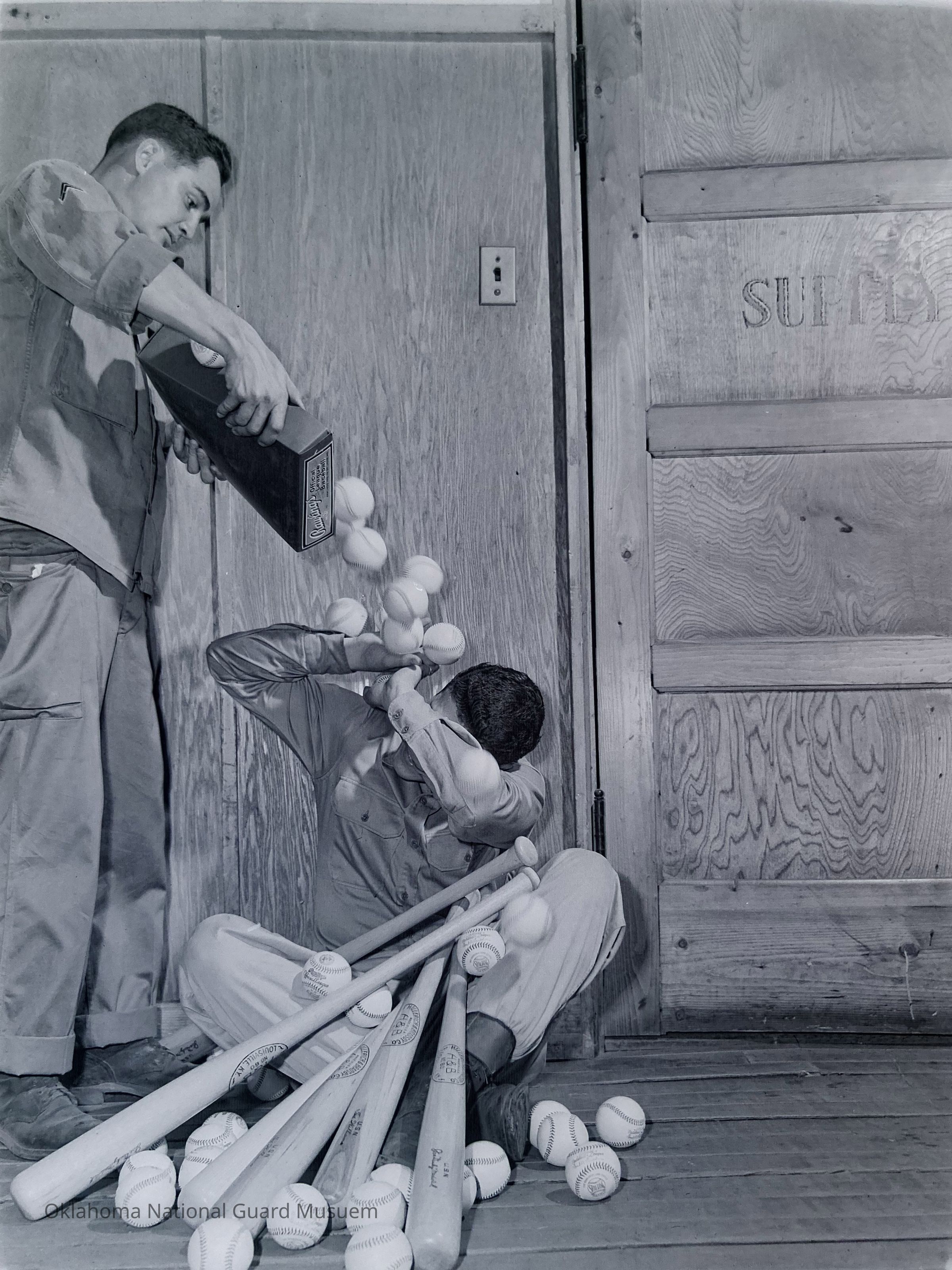 Soldiers, Baseball bats, Baseballs, Supply rooms, Recreation