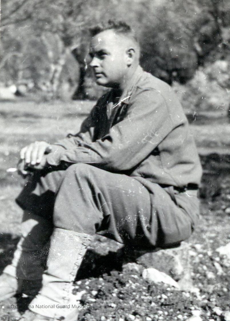 Wesley Jones sitting on a rock 160th Field Artillery