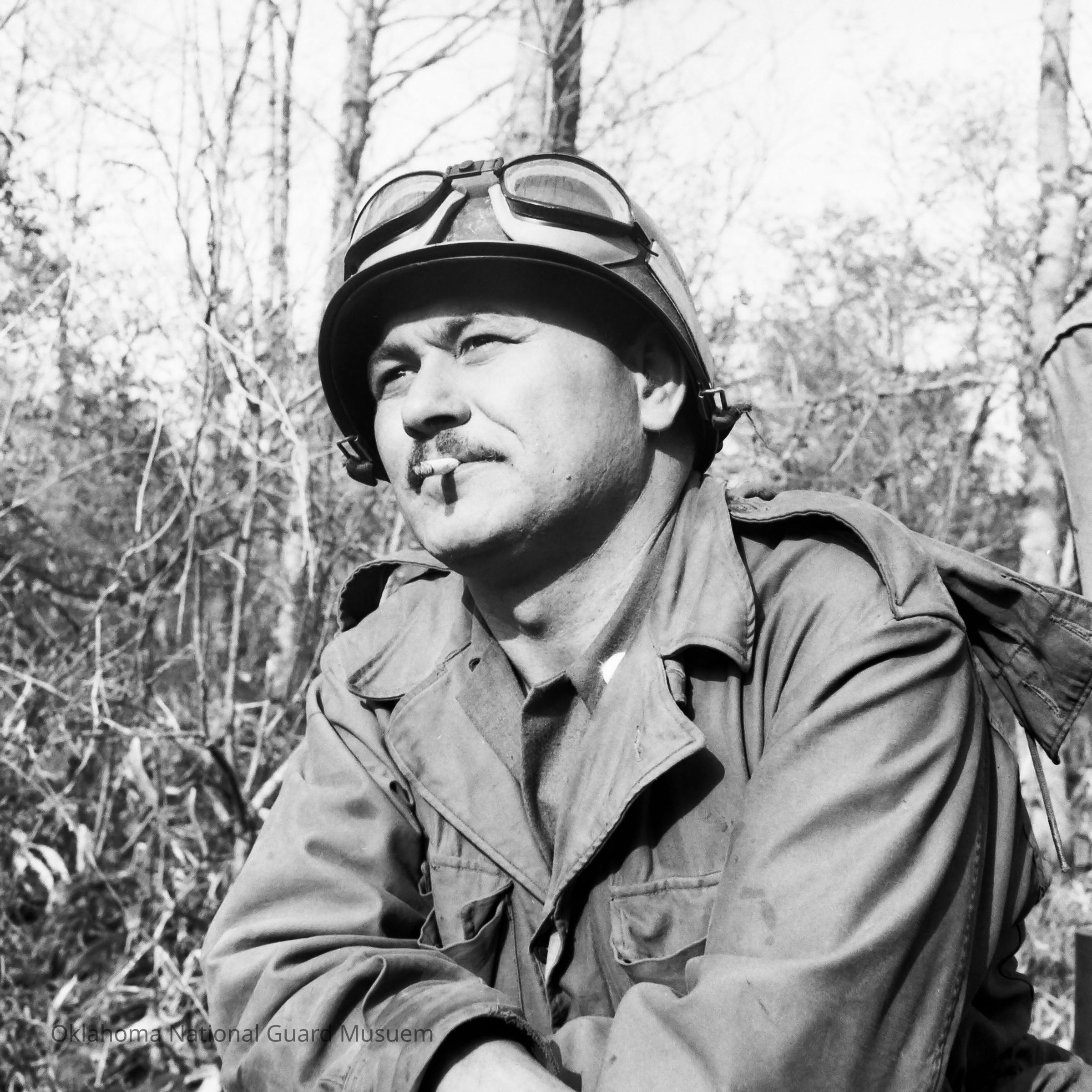 Soldier with cigarette looking into the distance