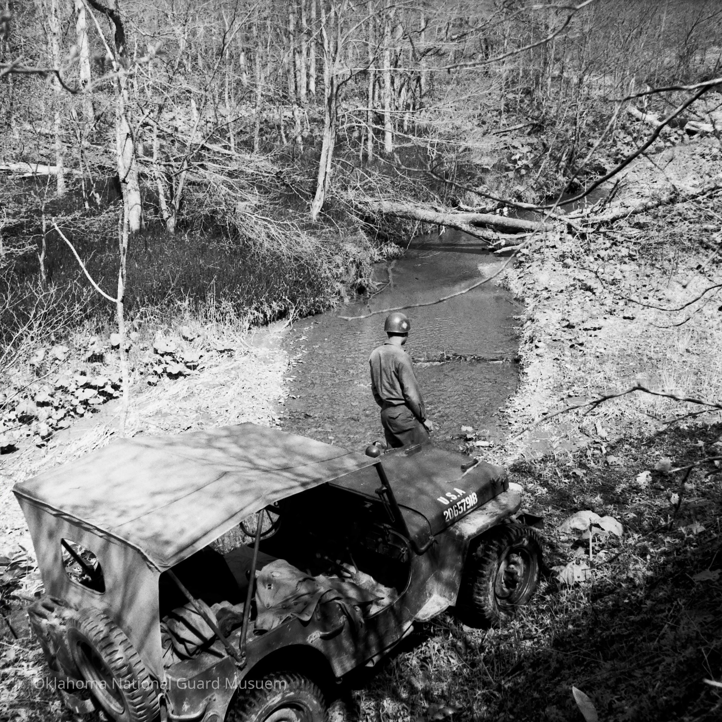 Soldiers, Army jeeps, Training, Military, Woods, Forests, Streams, Water, Rivers
