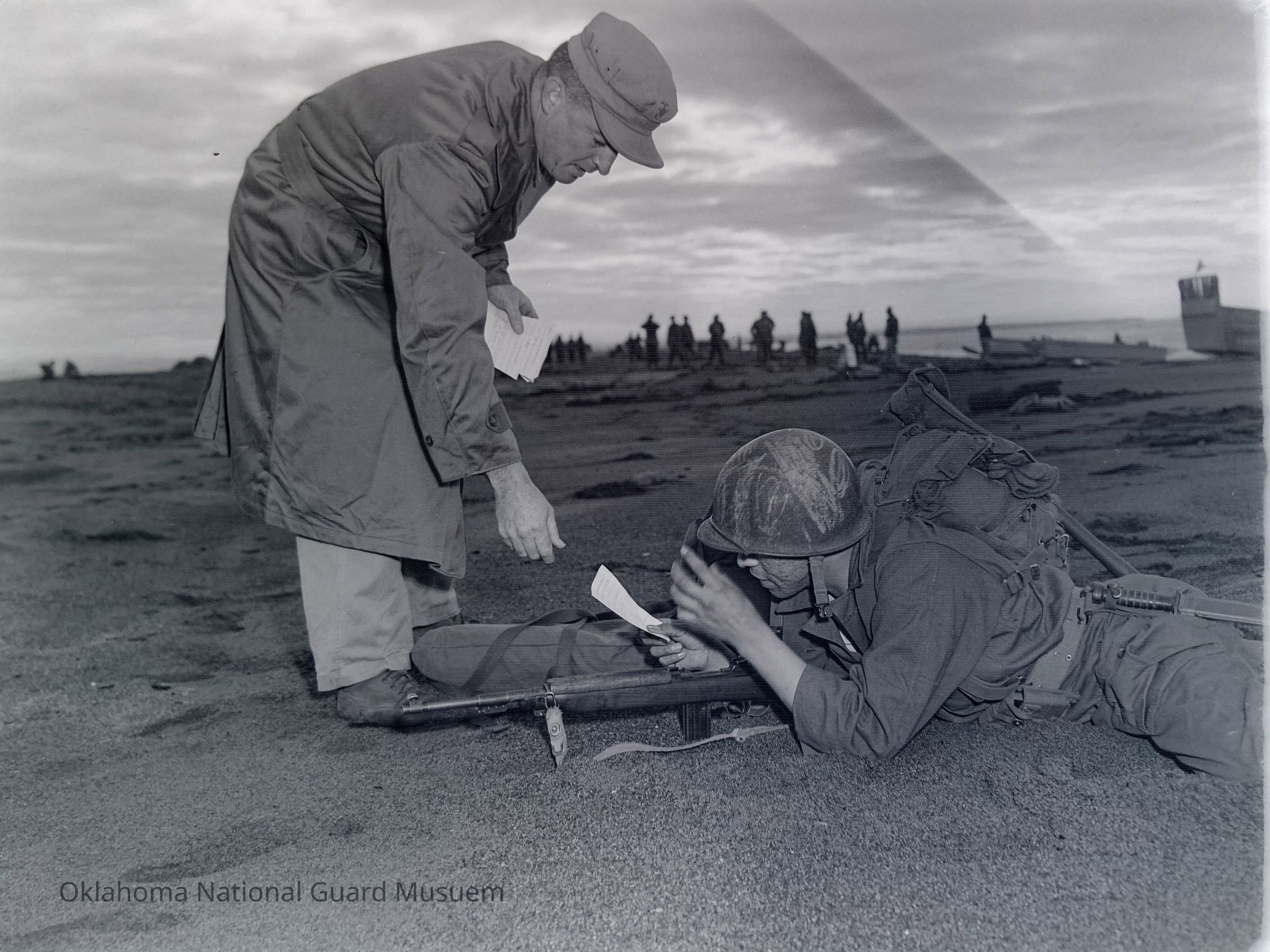 Negative of soldiers at beach landing practice on Hokkaido, Japan
