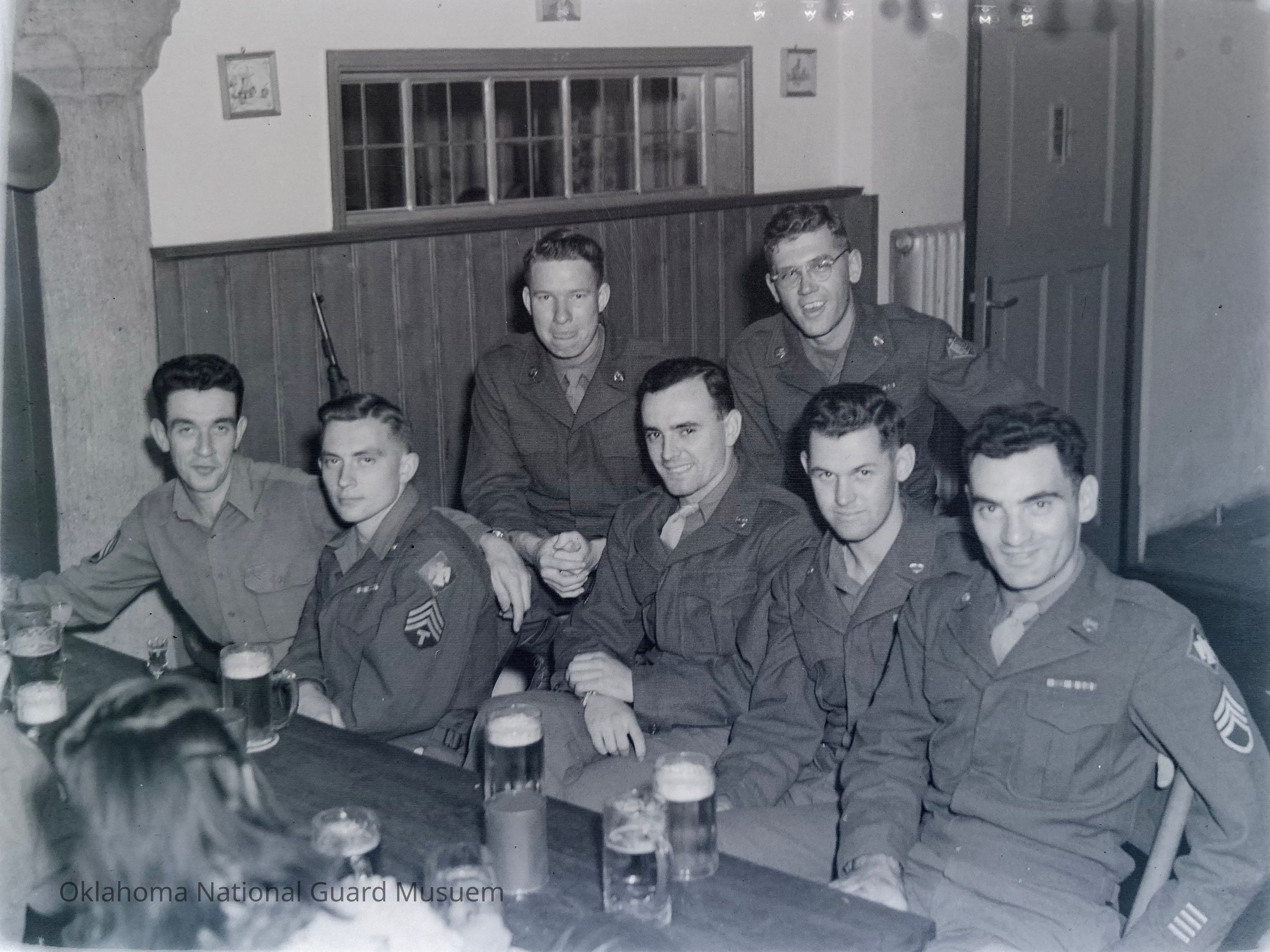Negative of soldiers at enlisted men's club- Division HQ Company