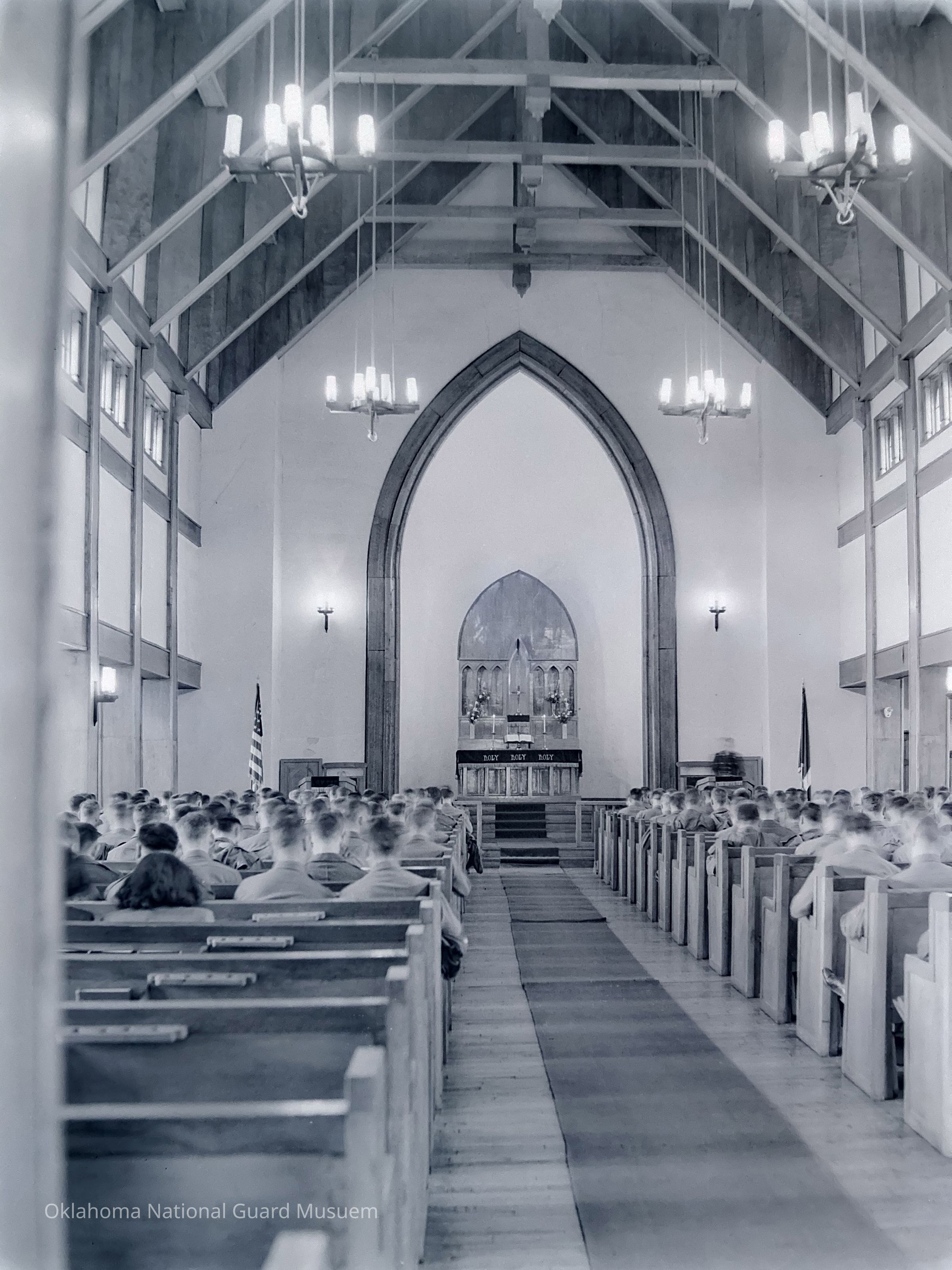 Soldiers, Church services, Churches, Pews, Flags, Altars