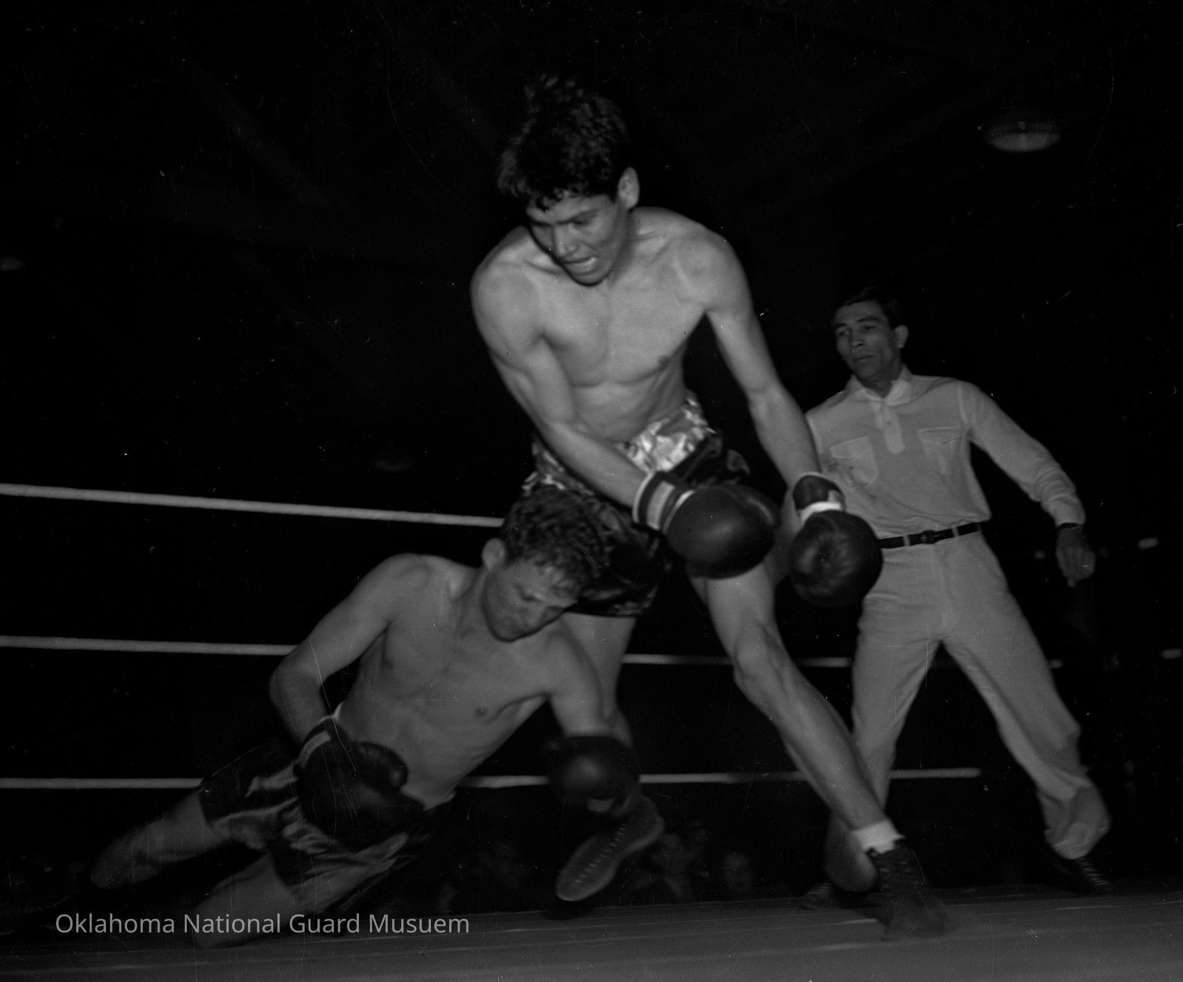 Negative of soldiers boxing