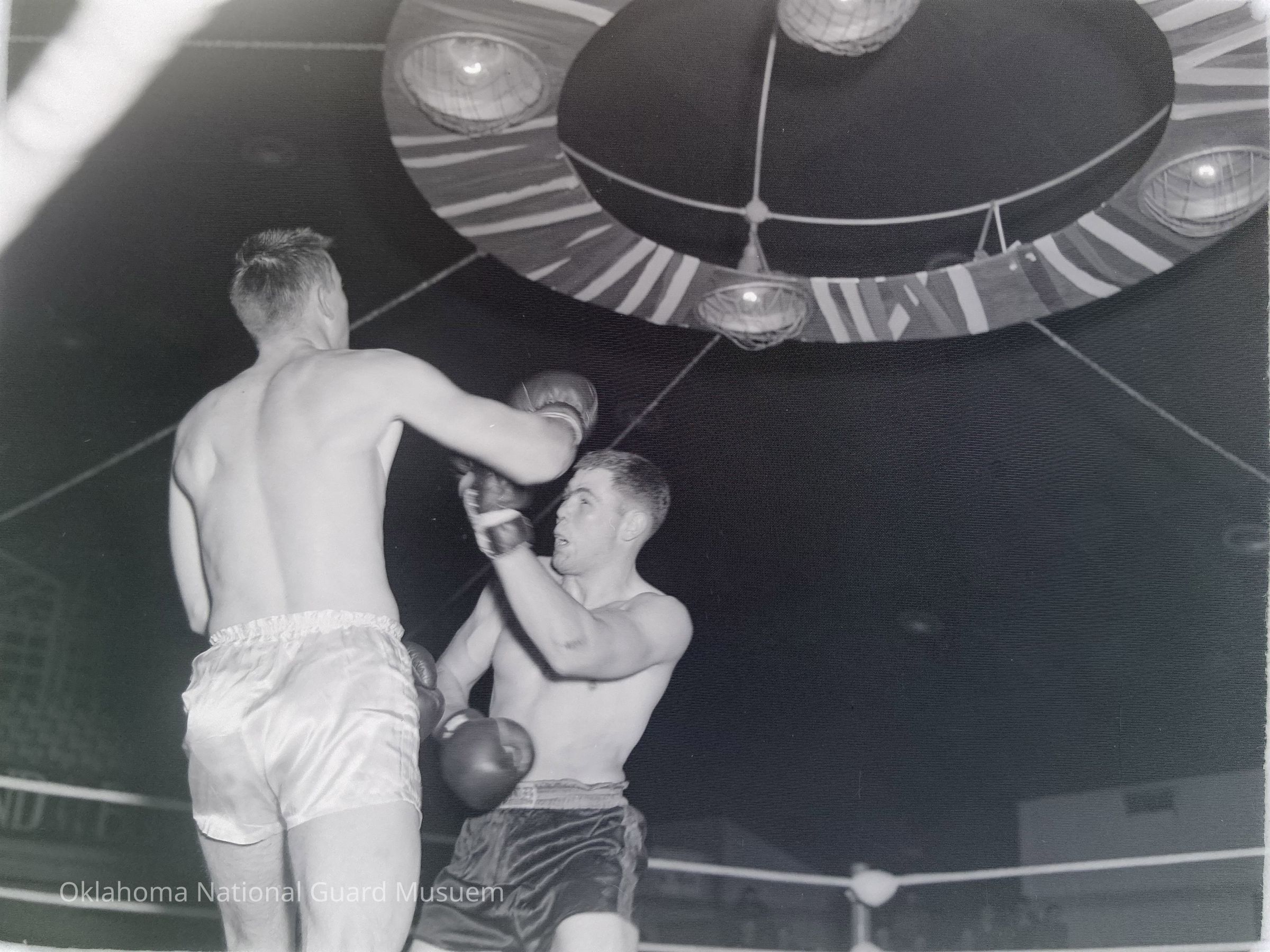 Negative of a soldier boxing match on Hokkaido, Japan