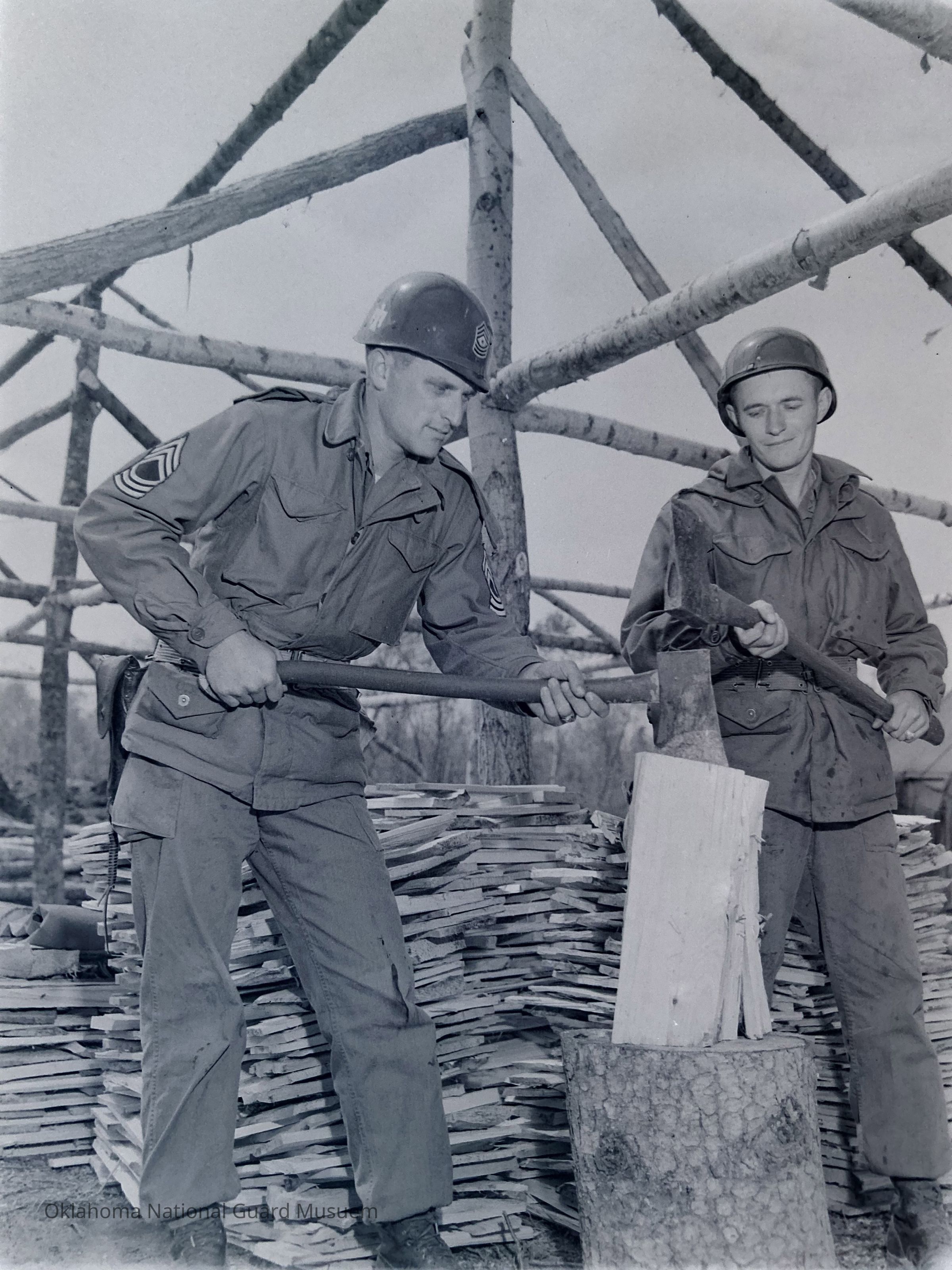 Soldiers chopping wood