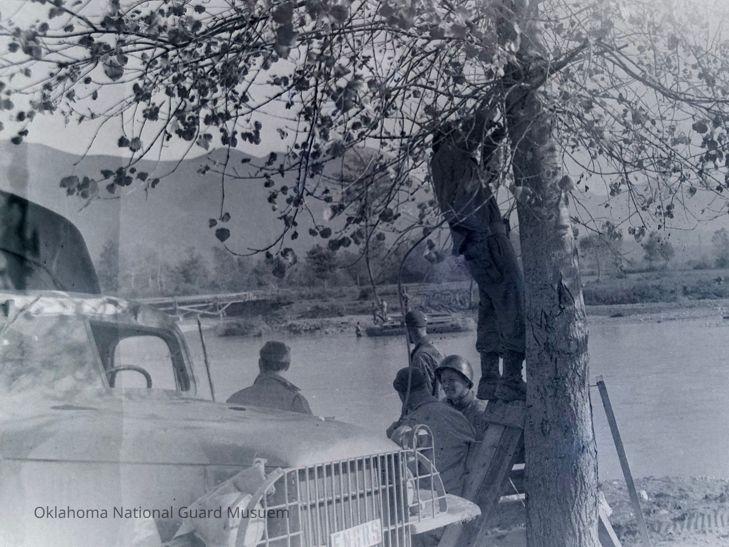 Soldiers crossing river