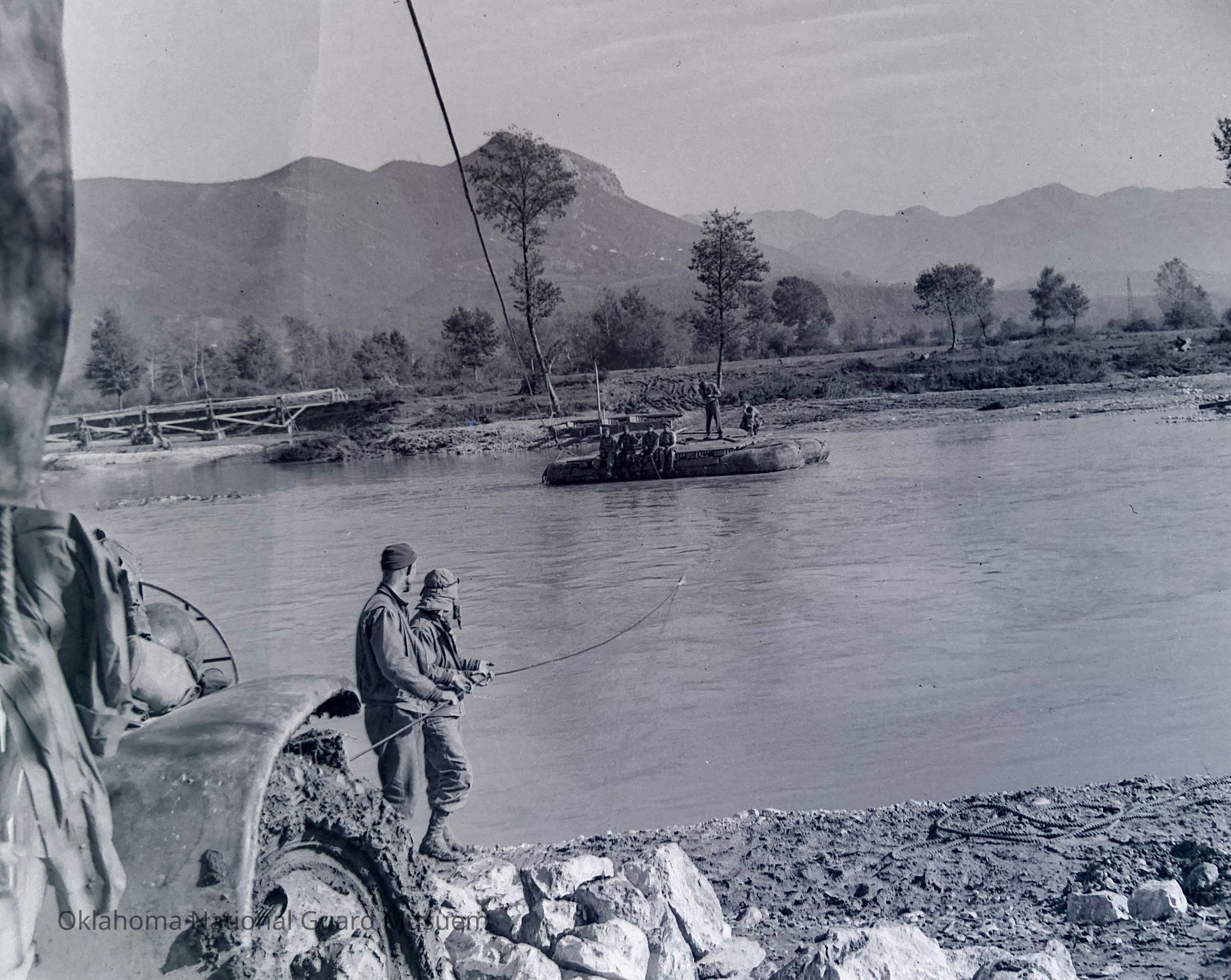 Photograph published in the 45th Division News, 4 December 1943, Vol. IV, No. 21, printed with the story "Thunderbird Engineers are River Boatmen"