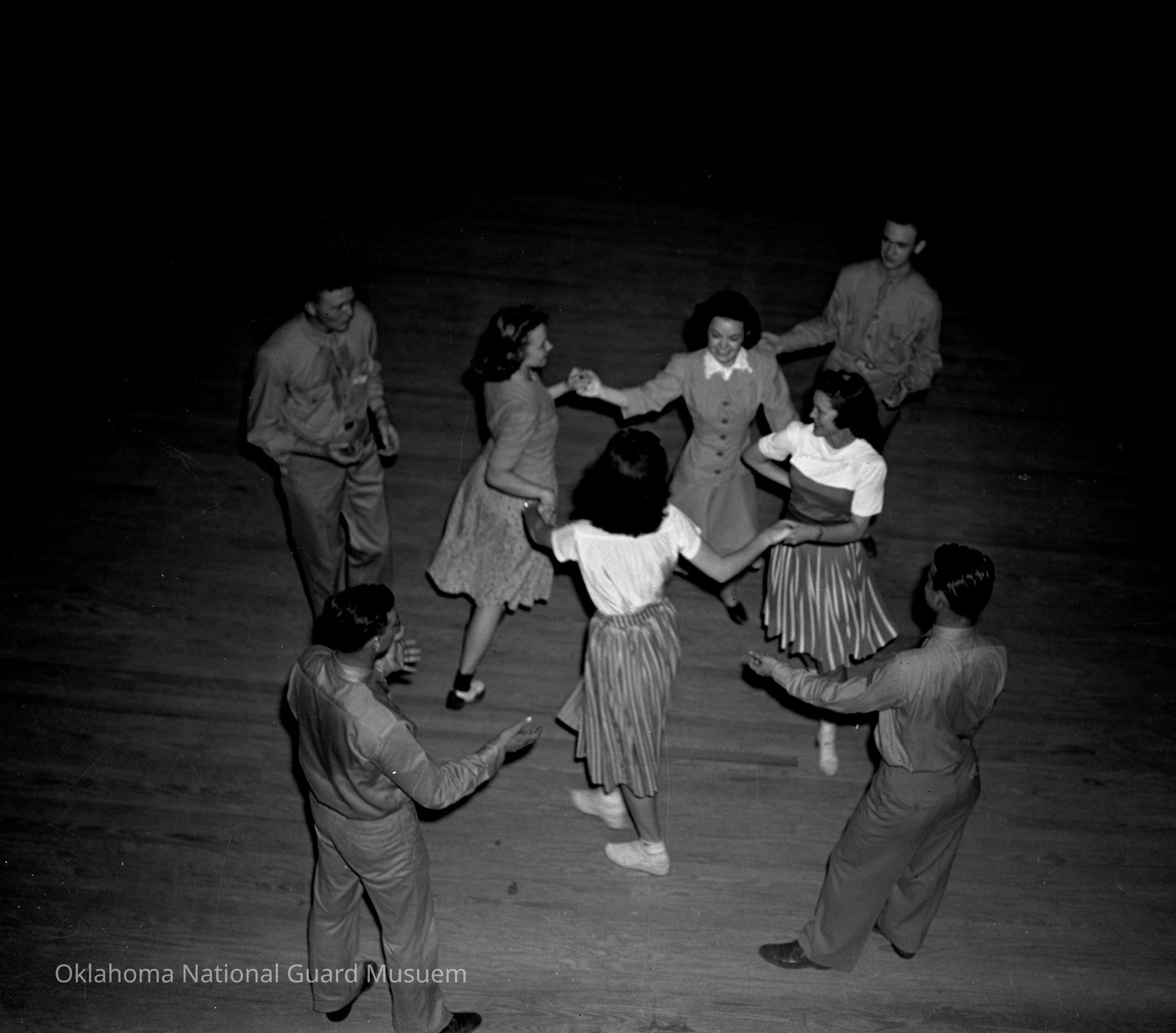 Negative of soldiers dancing with girls