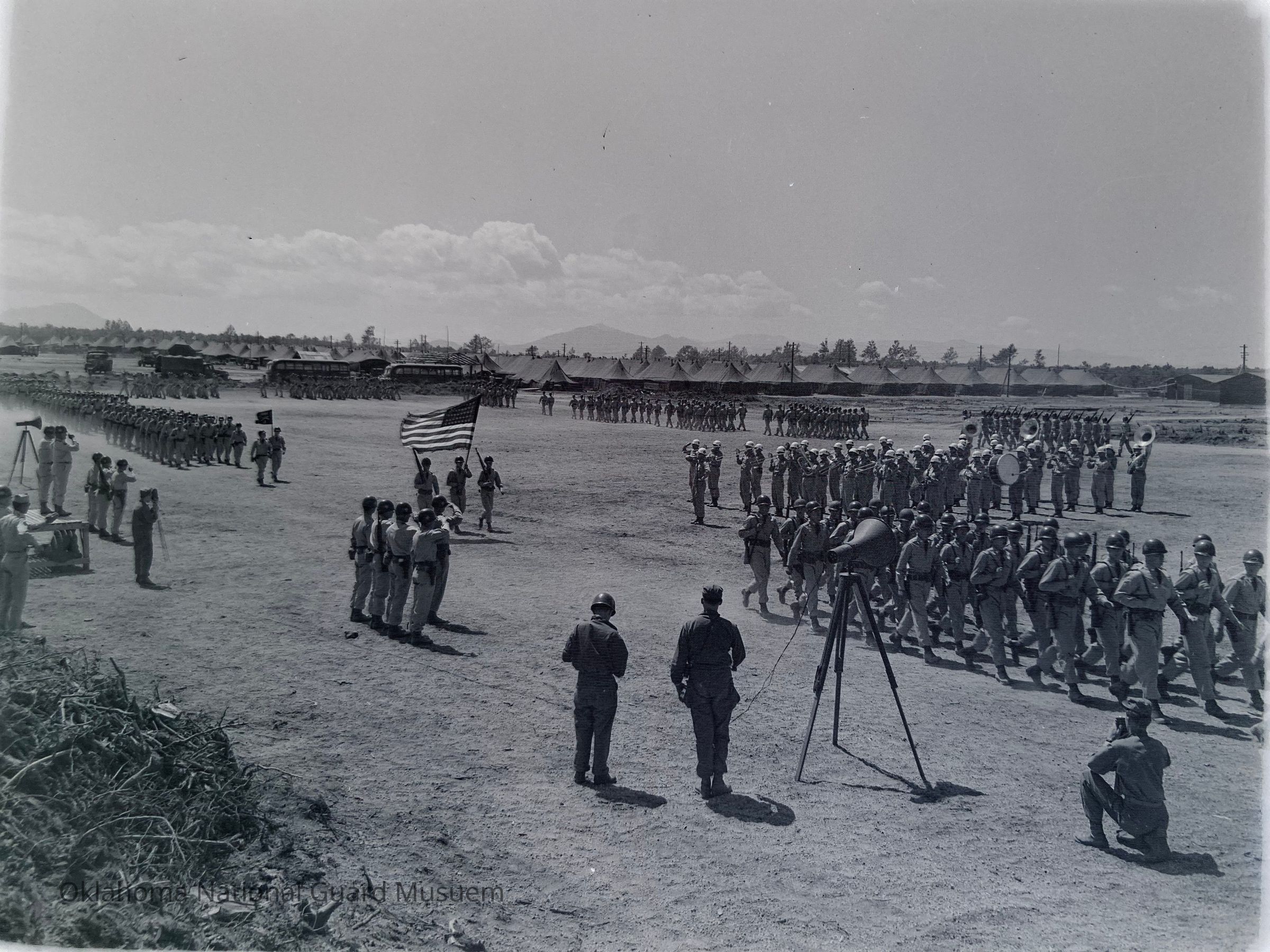 Soldiers, Marching, Military bands, Military parades & ceremonies, Reviews, Military, Flags, Reviewing stands, Military camps, Tents