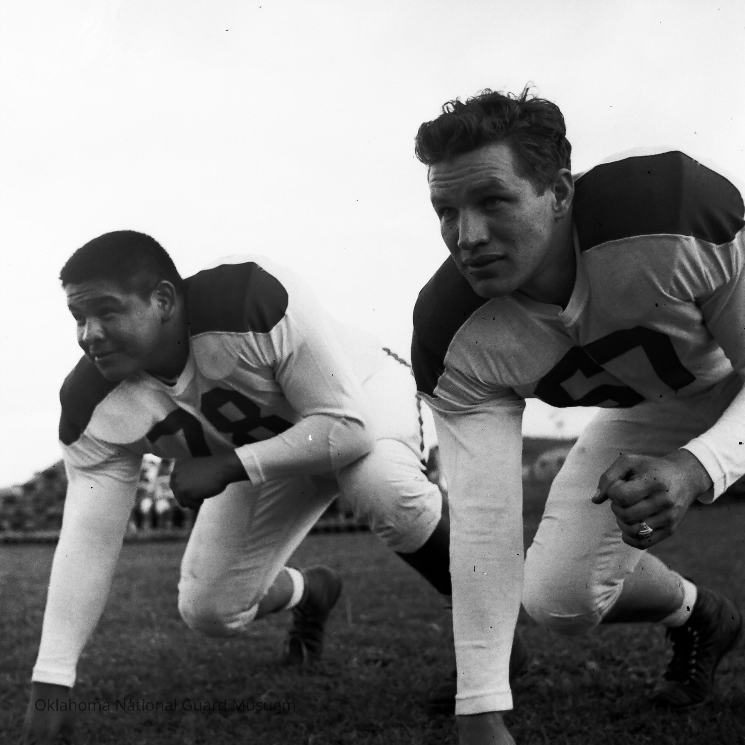 Negative of soldiers during football practice