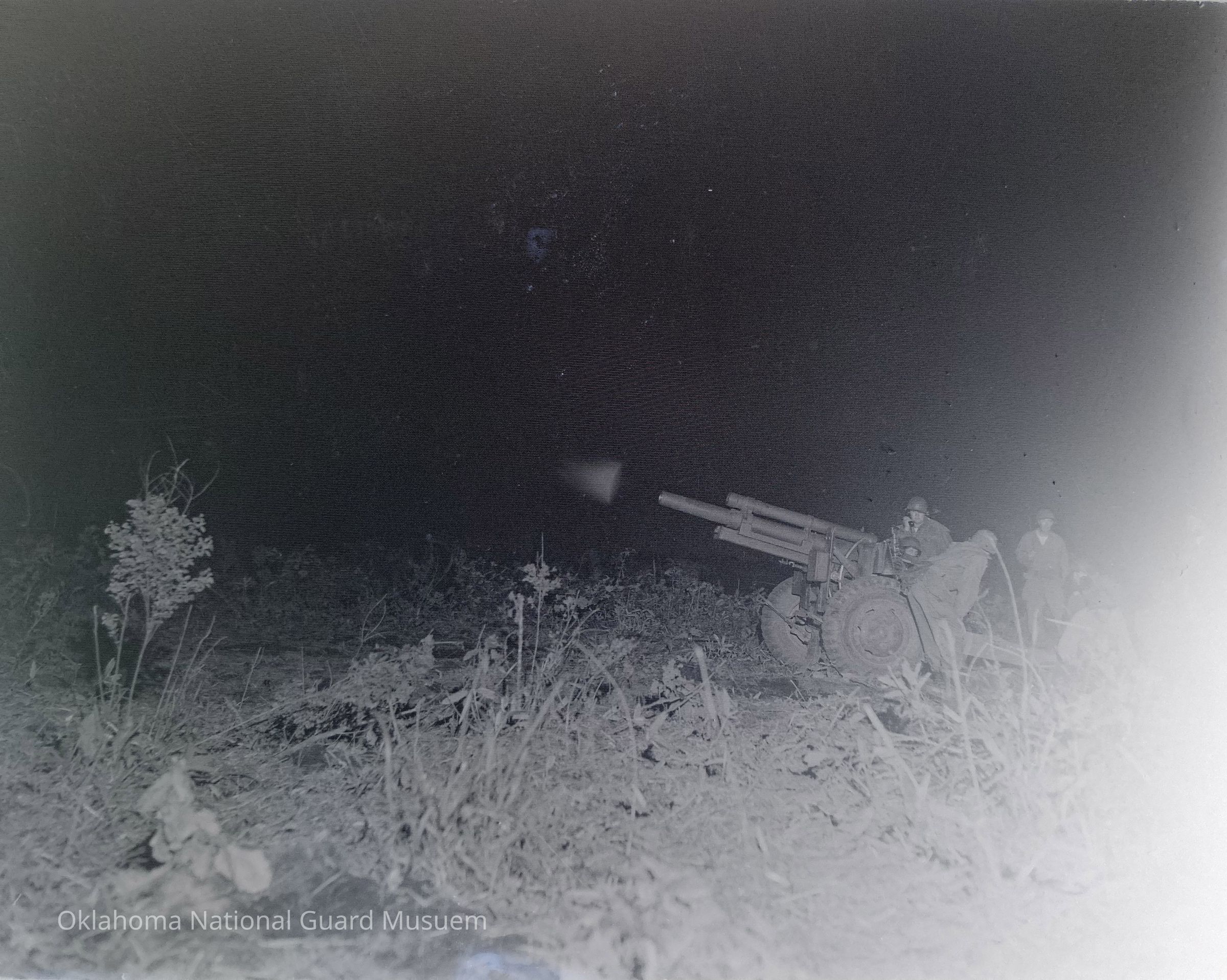 Negative of soldiers firing a 105mm gun on Hokkaido, Japan