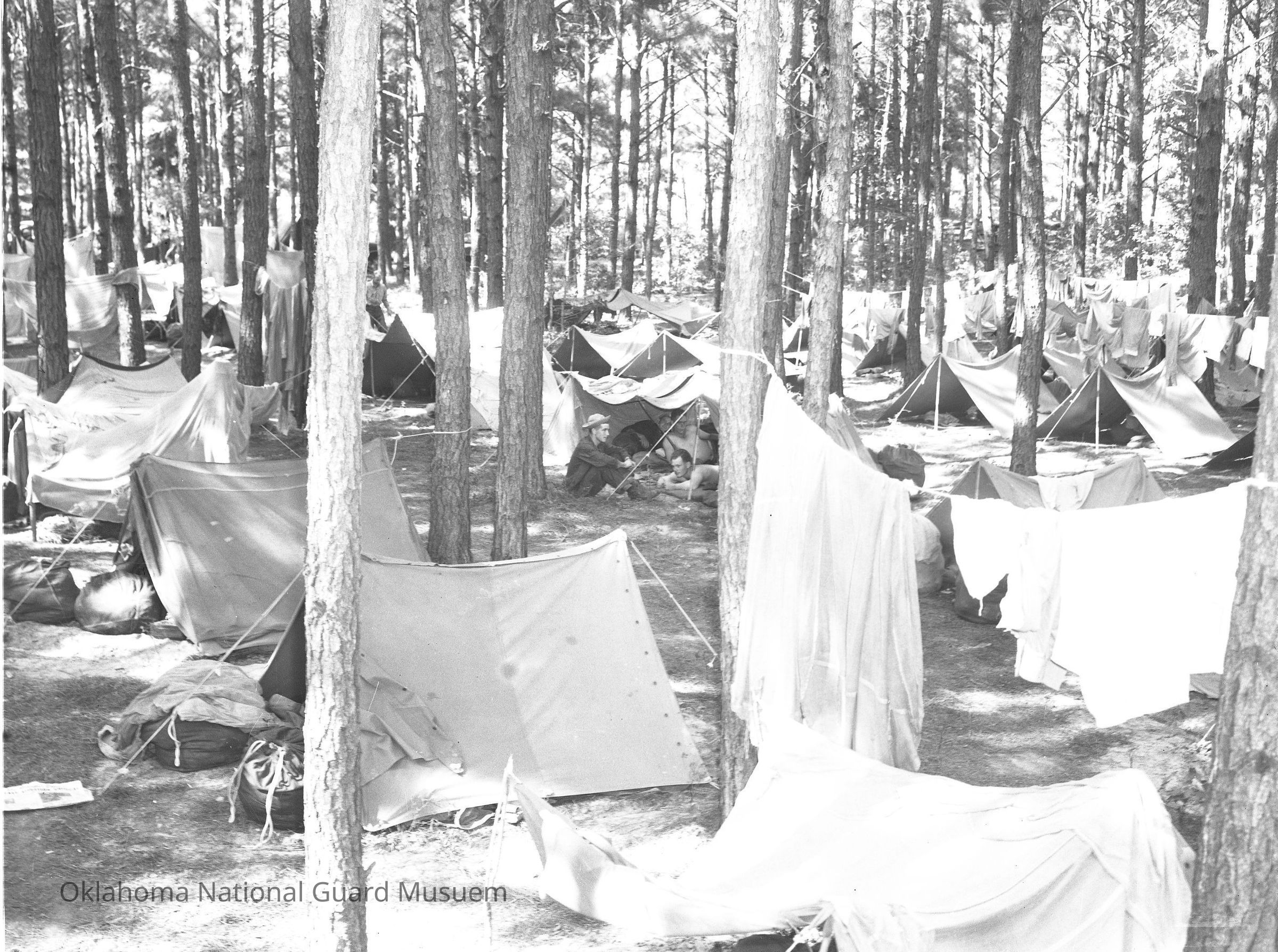 Soldiers in a pup tent encampment