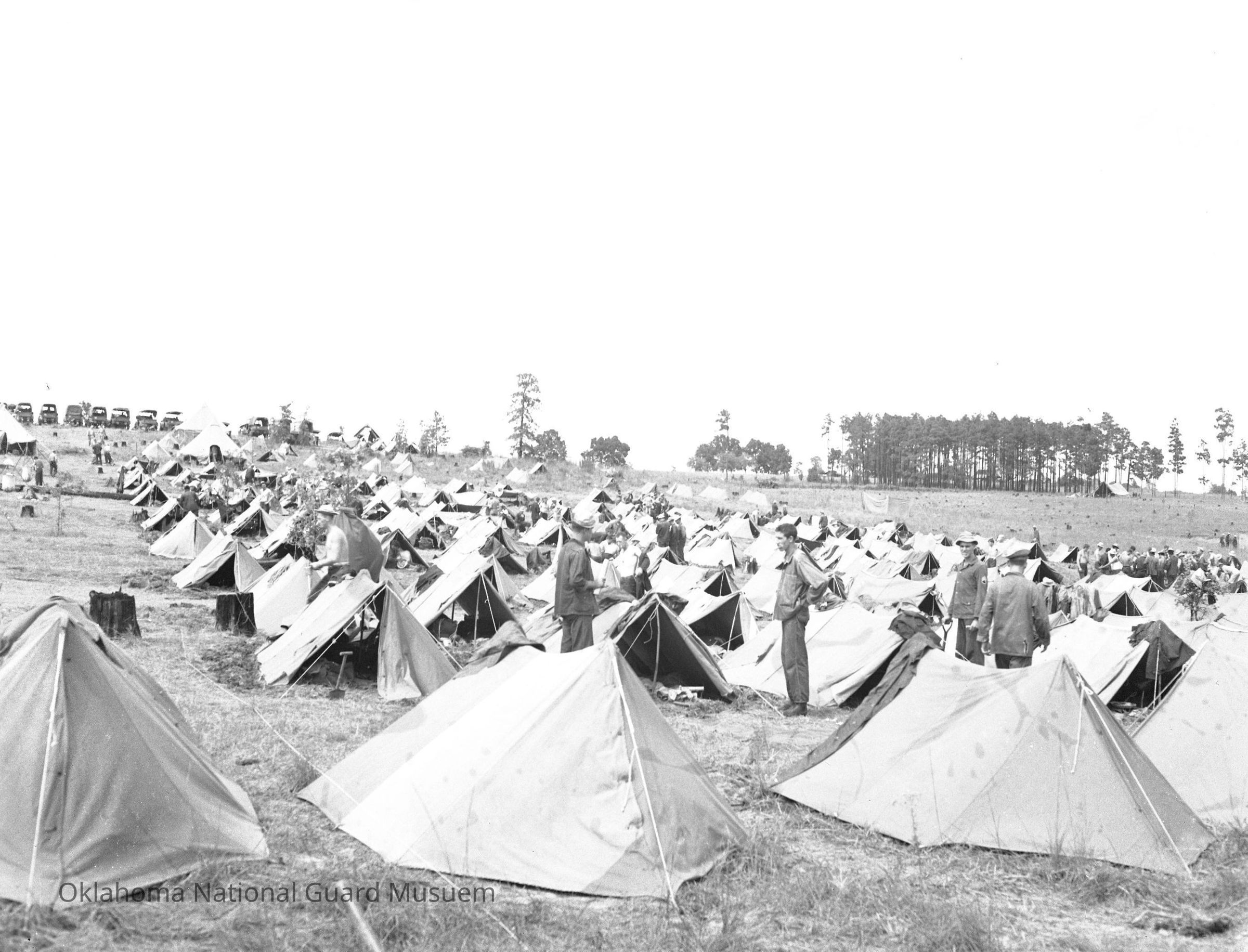 Soldiers in a pup tent encampment